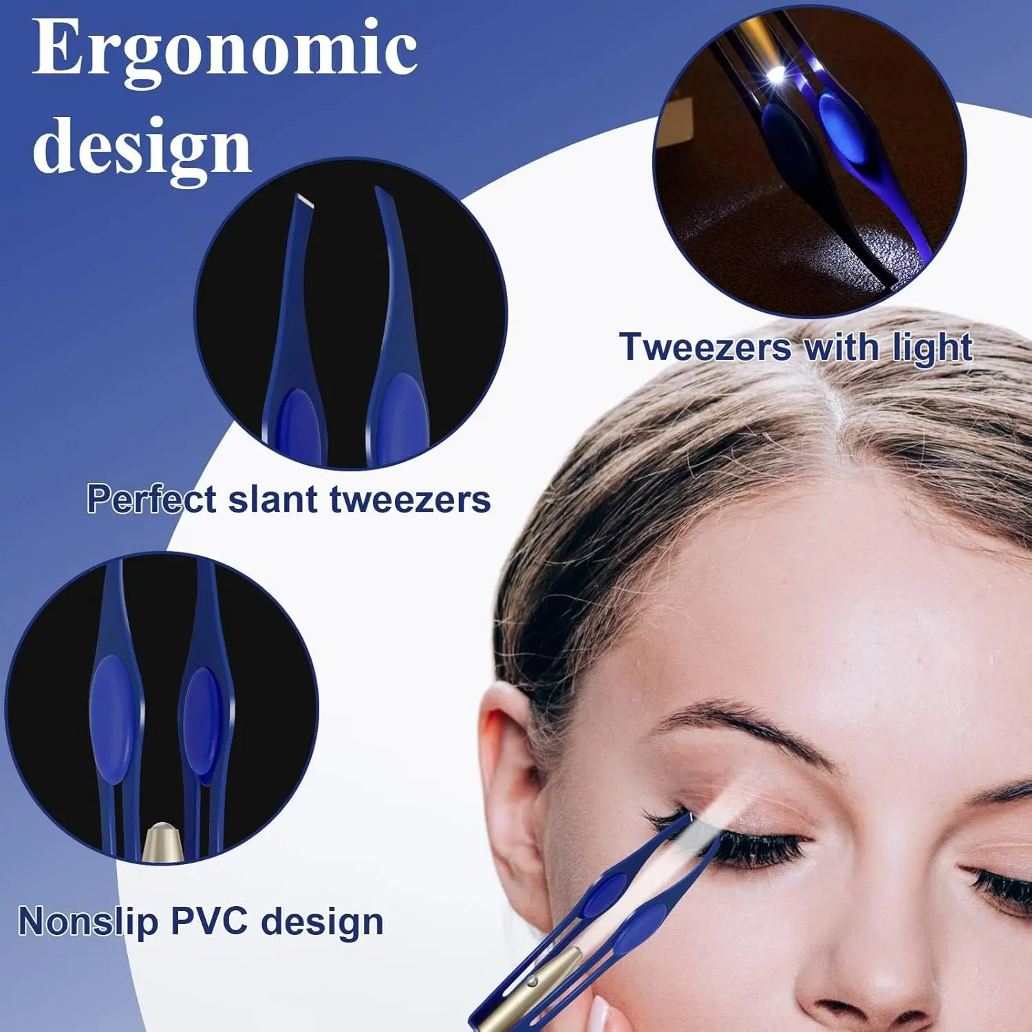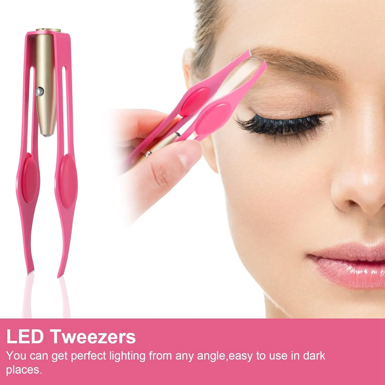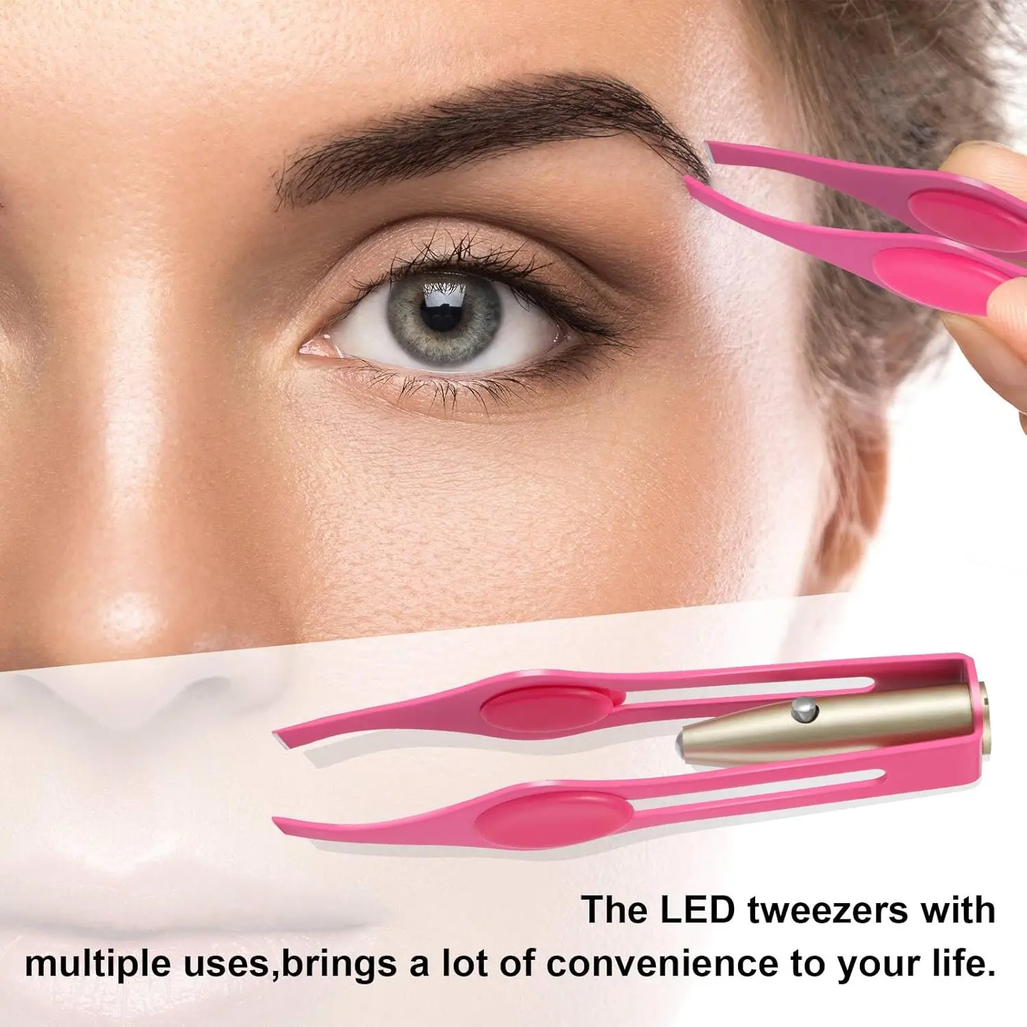 Achieve perfectly groomed eyebrows and effortlessly remove unwanted facial hair with our LED Lighted Tweezers! These meticulously designed tweezers combine precision, functionality, and convenience to deliver a superior hair removal experience. Featuring a built-in LED light, these tweezers illuminate the trimming area, ensuring you can see even the finest hairs with clarity. This enhanced visibility allows for precise trimming, shaping, and removal of ingrown hairs, resulting in beautifully sculpted eyebrows and a flawless complexion. The ergonomic design and easy-to-grip handle provide optimal control and comfort, while the hand-filed tip ensures a secure and even grip on each hair. Made from high-quality stainless steel, these tweezers are durable, rust-resistant, and easy to clean, making them a reliable tool for your beauty routine. Compact and lightweight, these tweezers are perfect for travel and on-the-go touch-ups. Whether you’re shaping your eyebrows, removing pesky nose hairs, or tidying up your upper lip, these versatile tweezers are an essential addition to your grooming kit. Experience the difference that precision and illumination can make with our LED Lighted Tweezers! Say goodbye to frustrating hair removal and hello to perfectly groomed results, every time. The bright LED light ensures no hair goes unnoticed, making your grooming routine more efficient and effective. This tool is not only for eyebrow shaping but can be used for multiple purposes, like removing splinters or other small particles embedded in the skin. These tweezers are suitable for everyone, regardless of their skill level in grooming. It will be a good tool for creating clean and smooth skin.