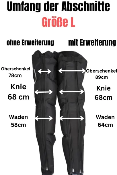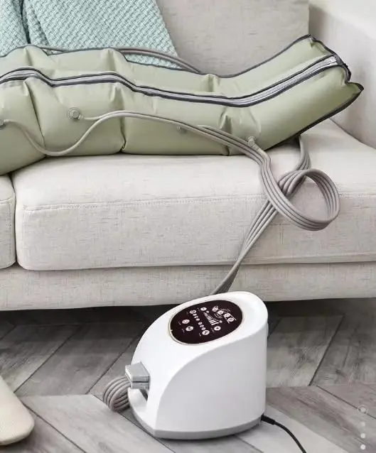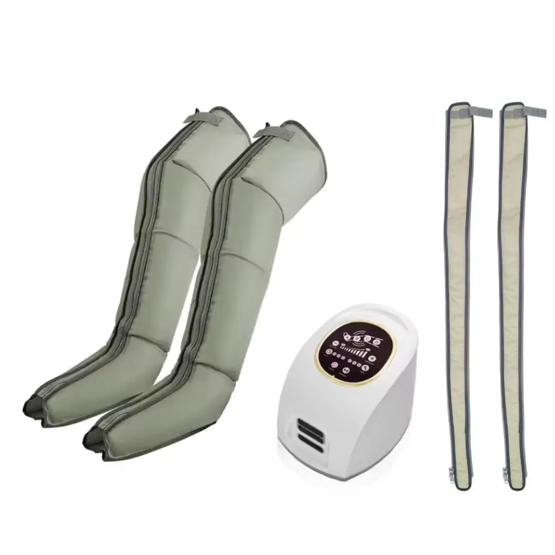 Improve your leg health and well-being with our advanced leg compression system. Designed to enhance blood circulation and lymphatic drainage, this device utilizes intermittent pneumatic compression to gently massage your legs, promoting healthy blood flow and preventing blood clots. Experience the benefits of venous reflow promotion as this system supports the natural movement of blood back to the heart, aiding the calf muscle pump function. Ideal for individuals seeking to improve circulation, prevent thrombosis, or reduce swelling and discomfort in their legs. Please refer to the infographics for detailed thigh circumference and other dimension information. Extensions are available for those requiring a larger circumference fit, ensuring a comfortable and effective treatment experience. This system is your reliable partner in maintaining healthy legs. The system uses compressed air to alternate between pressure and relief, mimicking the body’s natural circulatory processes. By promoting better blood flow, it also aids in the efficient removal of waste products from tissues, thus supporting lymphatic drainage. Invest in your leg health today and enjoy the comfort and peace of mind our leg compression system provides.