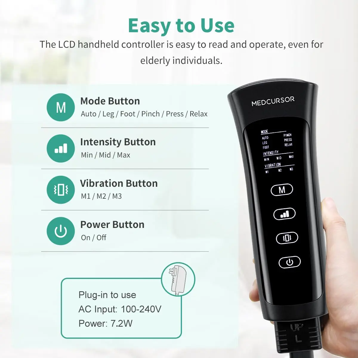 • 3 Air Intensities & 3 Vibration Modes: Adjustable settings via LCD controller.