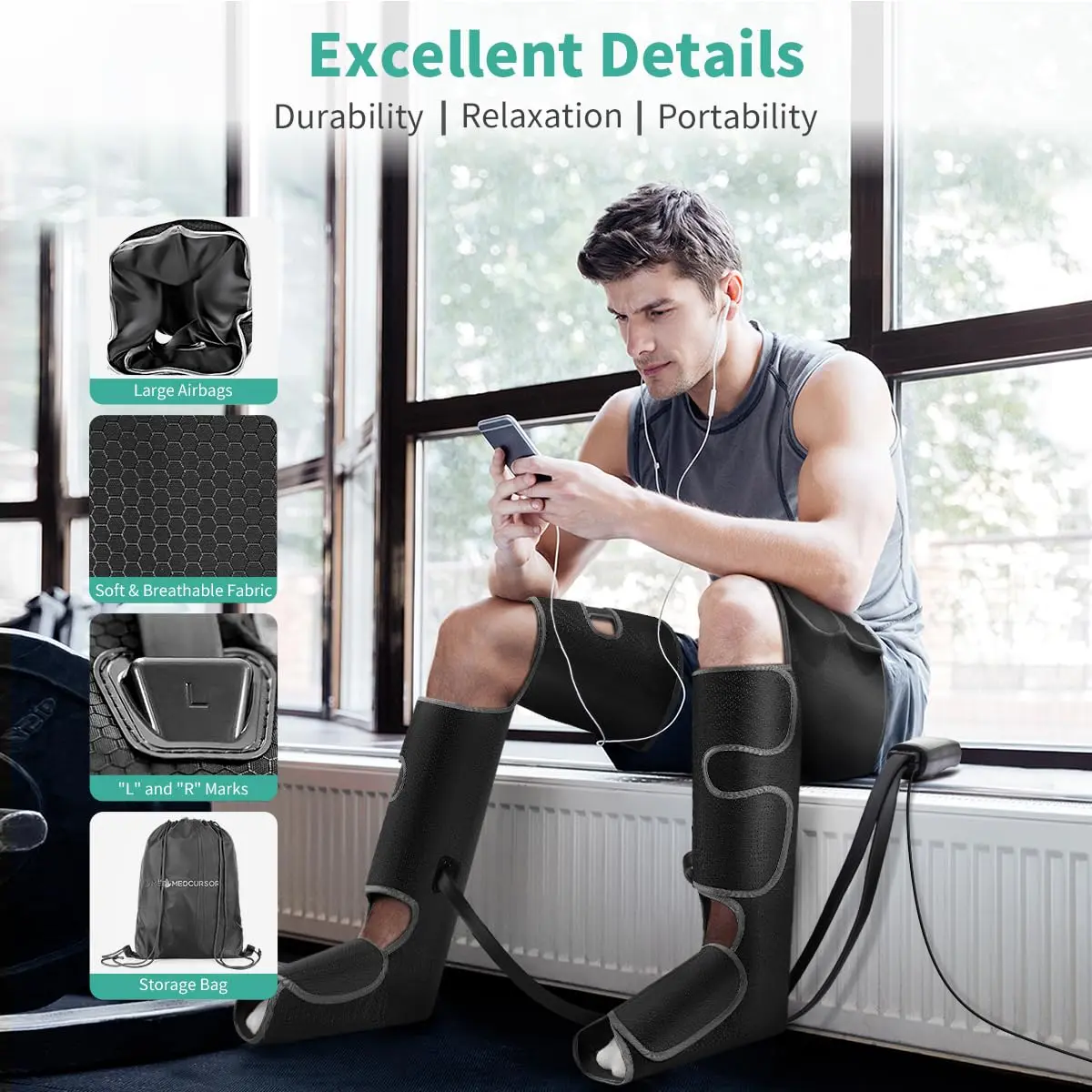 • Cyclic Air Compression Technology: 3×3 airbags for deep muscle stimulation.