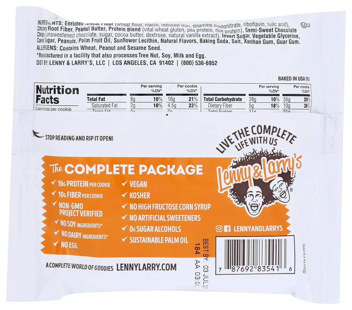 Lenny & Larry’s Peanut Butter Choc Chip Cookies: a delicious and guilt-free treat with plant-based protein and fiber. Perfect for a healthy and satisfying snack.