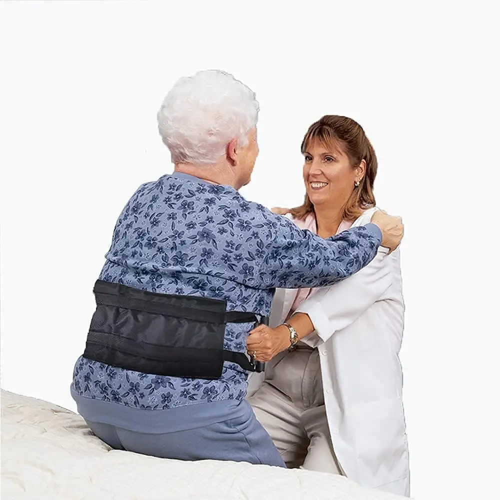 This Lift Belt for Elderly Transfer Assist Padded Sling is a crucial aid for caregivers providing assistance to individuals with mobility limitations. This transfer sling offers enhanced comfort and safety during transfers from beds, chairs, wheelchairs, and other seated or reclined positions. The thoughtfully designed sponge grip handles provide a secure and comfortable hold for caregivers, reducing the risk of strain and injury during lifting and transferring. These handles are strategically placed on one side of the sling, allowing for easy and ergonomic grabbing. The non-slip padded area is thickened to ensure maximum comfort for the patient during transfer, minimizing discomfort and promoting a sense of security.