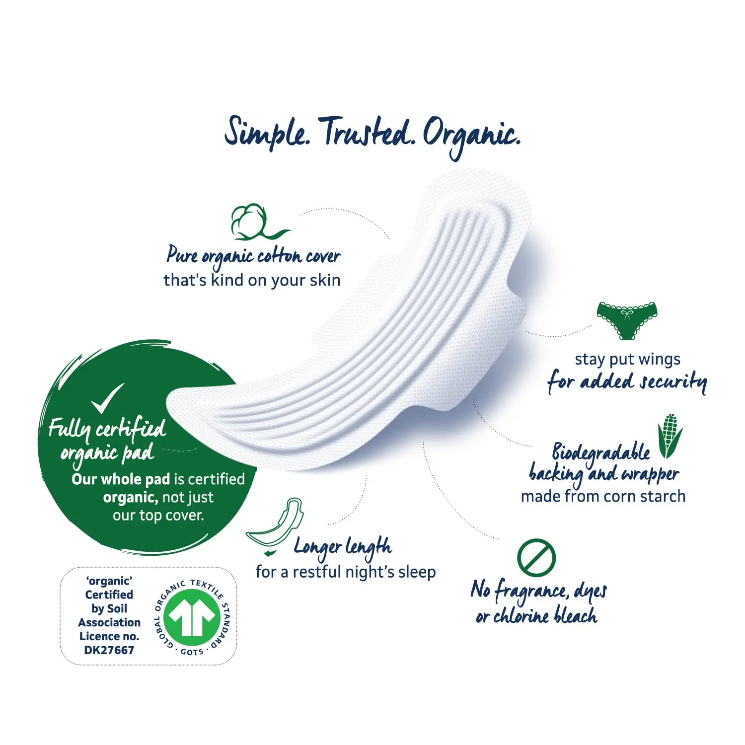 Experience a gentler period with Lil-Lets Organic Pads. Made with 100% certified pure organic cotton, these pads offer a comfortable and reliable way to manage your flow. Free from fragrance, dyes, and chlorine bleach, our pads are also vegan-friendly, making them a great choice for those with sensitive skin and conscious consumers. Lil-Lets Organic cotton pads ensure you stay fresh and confident throughout the day, providing excellent protection against leaks. The top sheet and absorbent core are both crafted from 100% certified organic cotton, offering a gentle and effective solution for period management. Available in two absorbencies – normal and night – you can choose the perfect pad for your needs. Our organic normal pads are ideal for lighter to medium flow days, while our organic night pads provide enhanced protection for nighttime use or heavier flow days. Trust Lil-Lets Organic Pads for comfortable, reliable, and eco-conscious period care.