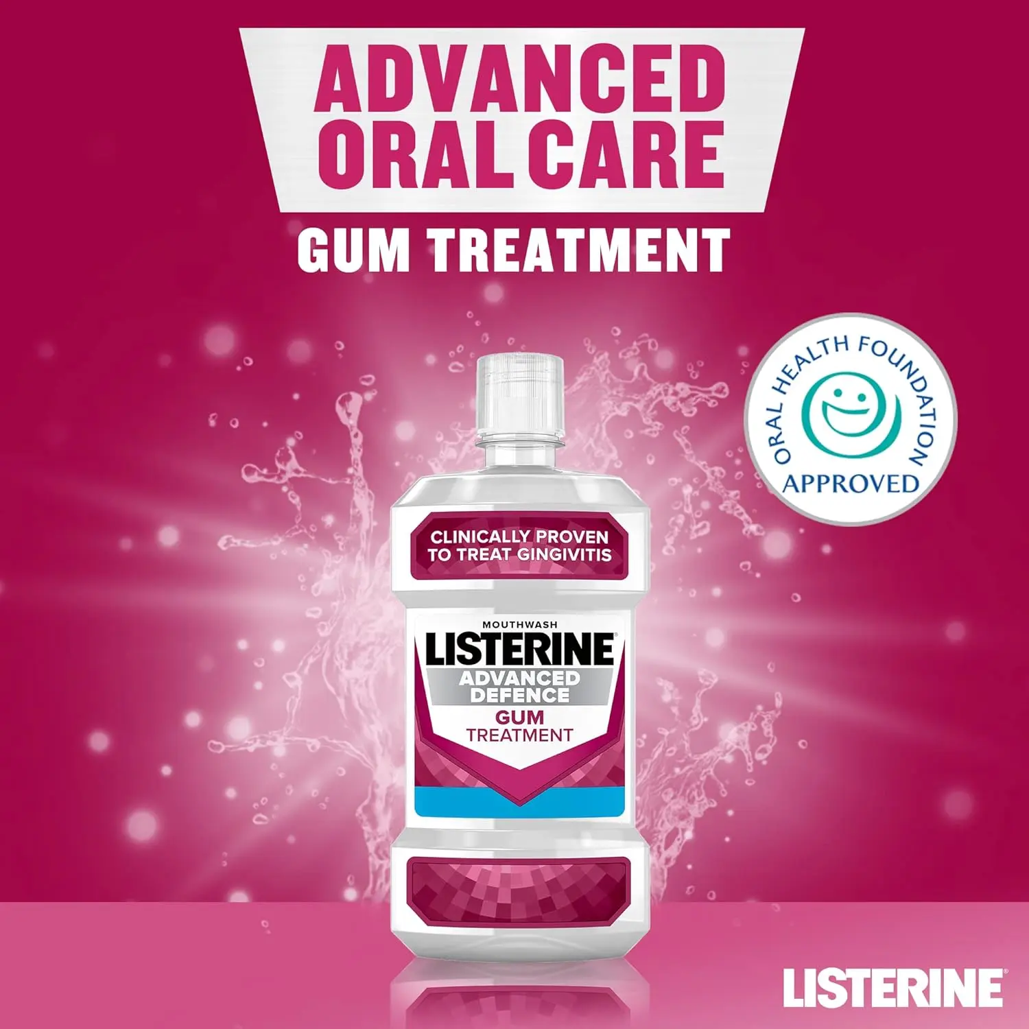 Listerine Advanced Defence Gum Treatment Mouthwash is your clinically proven solution for treating and preventing gum disease. As the #1 mouthwash brand in the UK & Ireland*, Listerine provides trusted and effective oral care. This powerful mouthwash targets gingivitis, addressing bleeding gums – a key sign of gum inflammation caused by plaque bacteria. Its unique formula creates an invisible protective shield, preventing plaque germs from attaching to the gums. This allows your gums to repair and restore themselves to a naturally healthier state. For optimal results, use Listerine Advanced Defence Gum Treatment Mouthwash twice daily, morning and evening, after brushing your teeth. Simply pour 20ml (4 x 5ml teaspoons) into a glass, rinse thoroughly for 30 seconds, and then spit out. This 500ml bottle provides a lasting solution for maintaining healthy gums and preventing the recurrence of gum disease. Make Listerine Advanced Defence Gum Treatment Mouthwash part of your daily oral hygiene routine and experience the confidence of a healthy, vibrant smile. Don’t let gum disease compromise your oral health. Choose Listerine, the trusted leader in mouthwash, and take proactive steps towards a healthier, happier you. Experience the difference that clinically proven gum treatment can make. Invest in your oral health today! *Based on Nielsen unit sales data.