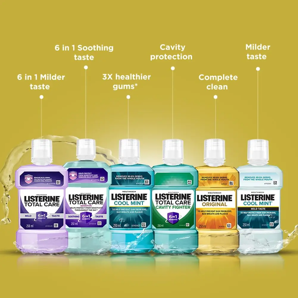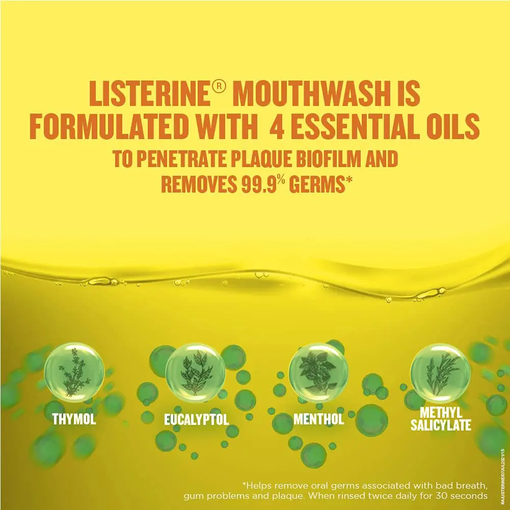 Fight plaque and gingivitis with Listerine Original Mouthwash. This powerful antiseptic mouthwash kills 99.9% of germs that cause bad breath, plaque, and gingivitis, leaving your mouth feeling clean and refreshed. Its original formula has been trusted for generations to deliver effective oral hygiene. Use it twice daily after brushing and flossing for a healthier mouth and fresher breath. Listerine Original Mouthwash is a vital part of a complete oral care routine, helping to maintain healthy gums and prevent oral health problems. Experience the invigorating clean and confidence that comes with using Listerine Original, the mouthwash dentists recommend. Don’t just mask bad breath, eliminate it at its source with Listerine Original. Make it a part of your daily routine and enjoy a cleaner, healthier mouth.