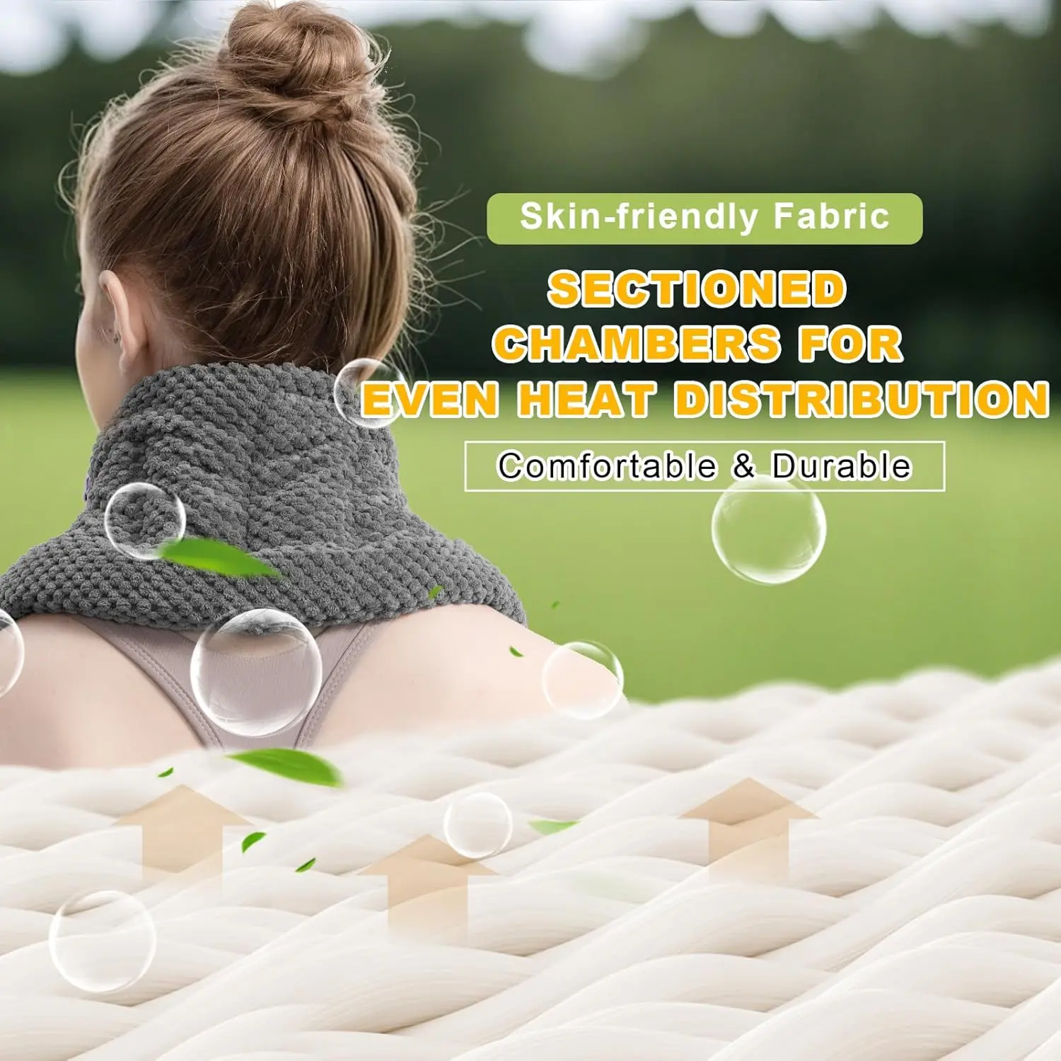 Experience fast and effective pain relief with our Long Heating Pad, designed specifically for neck, shoulders, and back pain. This microwavable heating pad uses soothing heat to stimulate blood circulation, easing stiffness and soreness. Its extra-long design, measuring 33*5.9 inches, allows it to comfortably hug your neck, shoulders, and back, providing comprehensive coverage unlike regular rice heating pads. Filled with a natural blend of millets, flaxseeds, and clay beads, our neck heating pad retains heat and moisture for extended periods, promoting deep relaxation. The ergonomic design is perfect for targeting the neck and shoulders, while the two convenient handles offer flexibility for use on any body part. The weighted filling applies gentle pressure to the target area, further enhancing pain relief and comfort. Crafted from skin-friendly polar fleece, the heated neck wrap is not only soft and comfortable but also durable enough to withstand frequent use and high temperatures, ensuring long-lasting heat preservation. Enjoy the soothing benefits of natural heat therapy with our reliable and effective heating pad. Say goodbye to discomfort and hello to relaxation. This heating pad is ideal for anyone seeking natural and effective pain relief. The combination of natural fillings and a comfortable design makes it a must-have for your self-care routine. It also makes a thoughtful gift for friends and family who experience neck, shoulder, or back pain.
