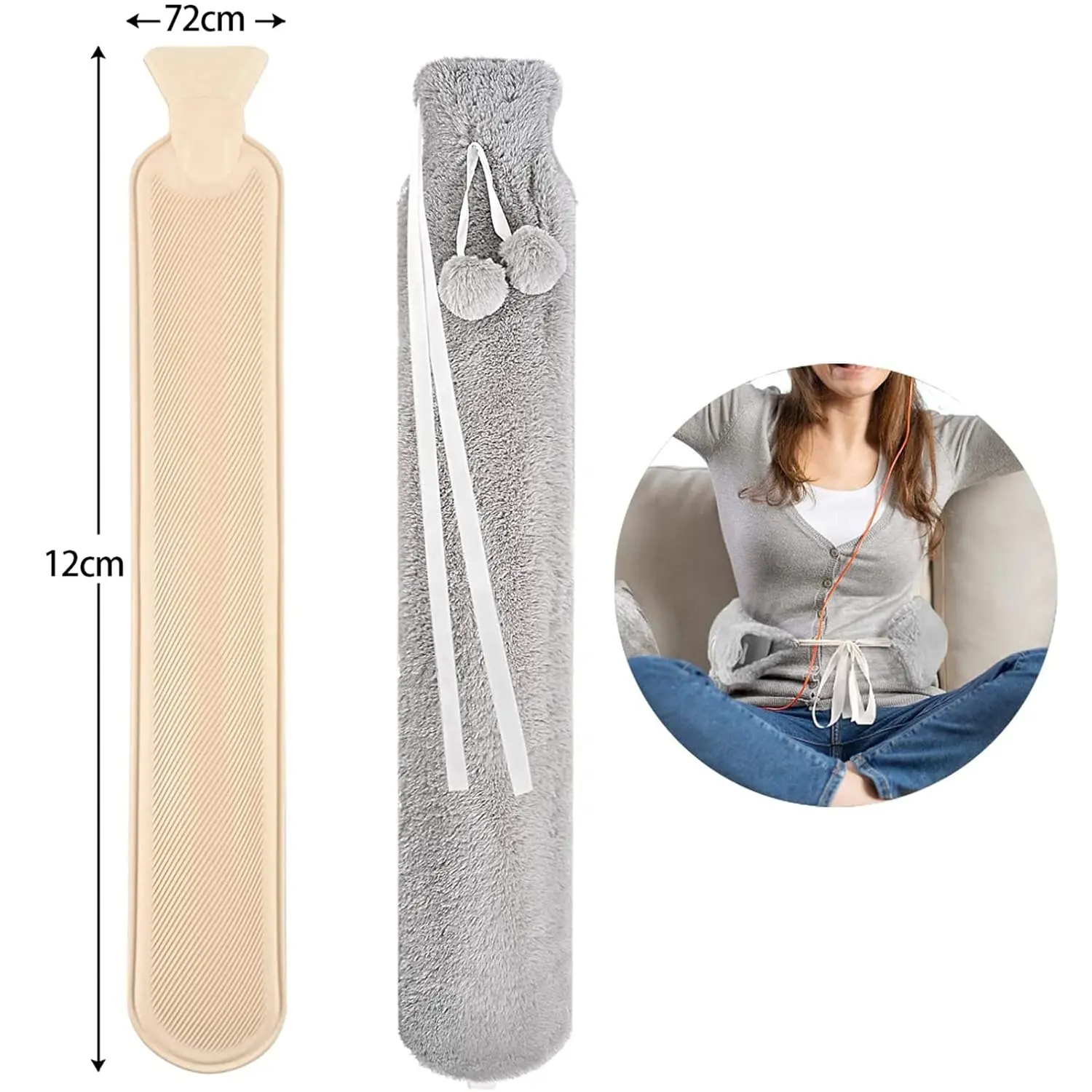 Experience soothing relief and cozy warmth with our Long Hot Water Bottle! Crafted from premium, BPA-free rubber, this water bag is designed for safety and comfort. Its extra-long 72cm (28.3in) design allows for versatile use – wrap it around your waist for menstrual cramp relief, drape it over your shoulders to ease muscle tension, or simply snuggle up with it in bed for a comforting warmth on chilly nights. Forget about charging or complicated setups; this reusable hot water bottle is ready to use whenever and wherever you need it. The wide mouth design ensures easy and spill-proof filling, eliminating the risk of burns while pouring hot water. Plus, the included super soft plush cover provides a luxurious touch and prevents direct contact with the hot surface for added comfort. Its superior heat and cold resistance make it a versatile companion for all seasons. Use it as a traditional hot water bottle to alleviate aches and pains, or fill it with cold water to create a refreshing ice pack for cooling down during hot summer days. From soothing menstrual cramps and muscle aches to providing comforting warmth or cooling relief, this long hot water bottle is a must-have for every household. Please note: Always fill the water bag to less than two-thirds capacity and avoid using a microwave to heat the water. Embrace the soothing comfort and versatile relief our Long Hot Water Bottle provides.