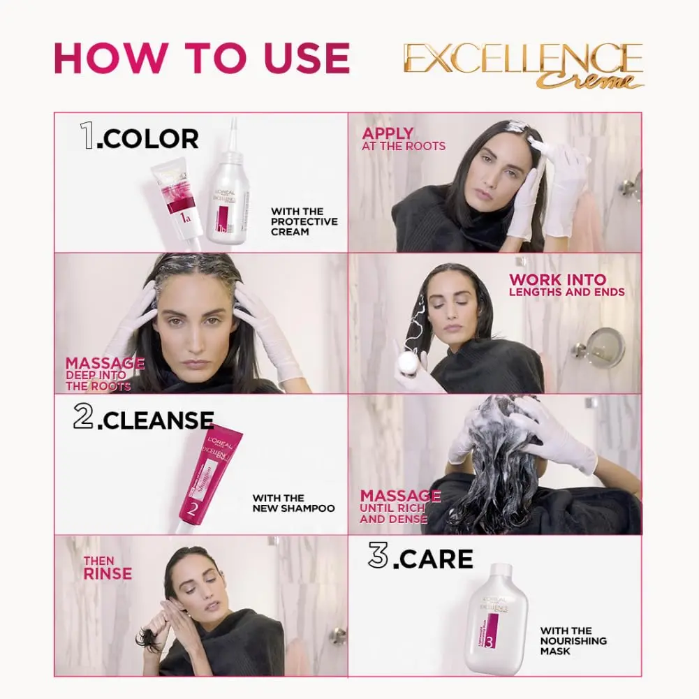 Achieve flawless, natural-looking dark brown hair with L’Oreal Excellence 4 Natural Dark Brown. This exceptional hair color provides 100% resistant grey coverage, ensuring that even the most stubborn grey hairs are completely concealed. The advanced formula is designed to deliver rich, long-lasting color that resists fading and keeps your hair looking vibrant and healthy. L’Oreal Excellence not only colors your hair beautifully but also protects and strengthens it, thanks to its nourishing ingredients. Experience the confidence of perfectly colored hair with L’Oreal Excellence 4 Natural Dark Brown.