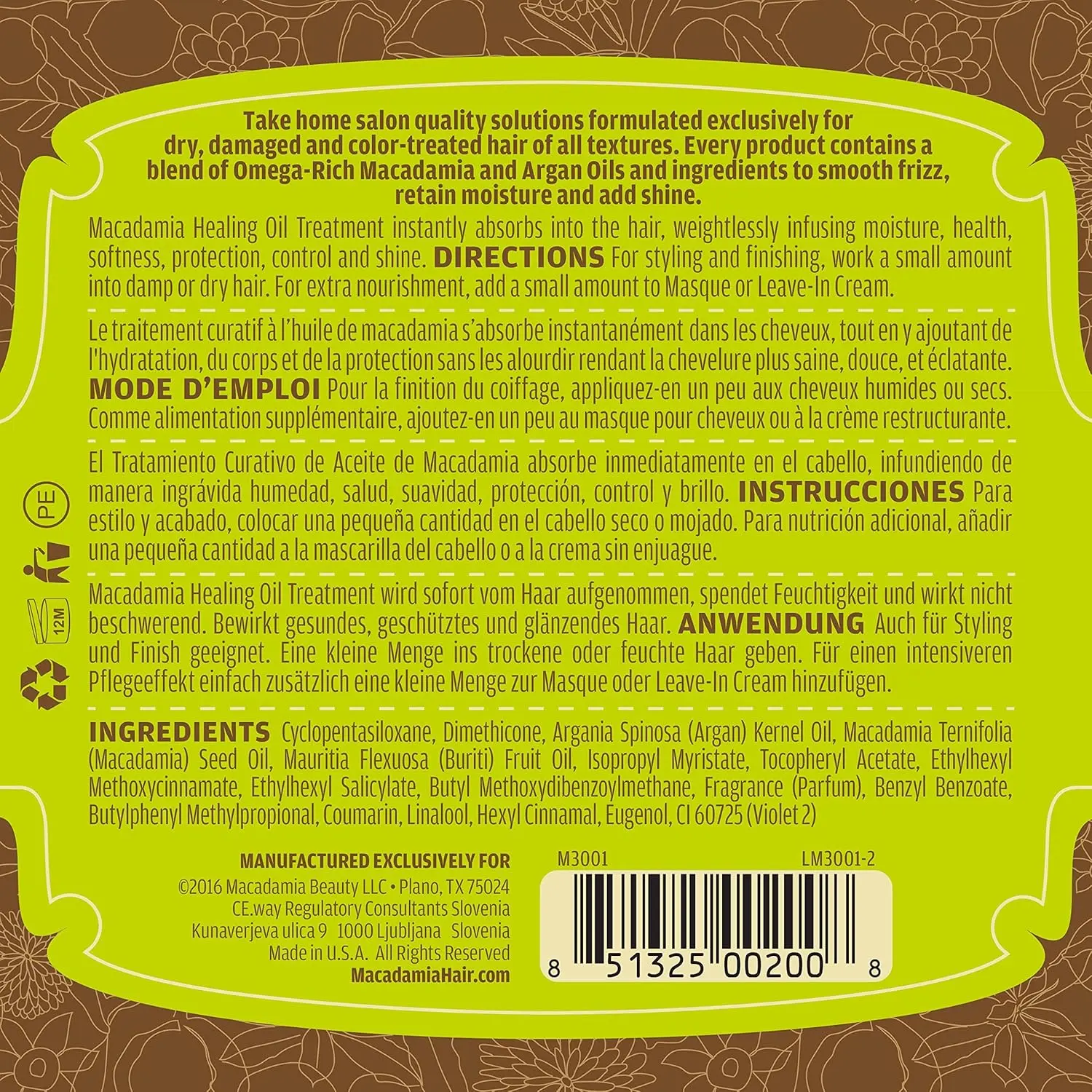 Revitalize your hair with Macadamia Oil Treatment, a deeply nourishing formula designed to extend the life of your vibrant color treatments. This exceptional oil treatment penetrates the hair shaft to deliver intense hydration, leaving your hair feeling soft, silky, and manageable. Say goodbye to dry, brittle strands and hello to healthy, lustrous locks that radiate with vitality. Our unique blend of macadamia oil and other essential nutrients works to repair damage, reduce frizz, and enhance shine. Experience a noticeable difference in the overall health and appearance of your hair with each use. Macadamia Oil Treatment not only nourishes but also significantly reduces drying time, saving you precious minutes during your styling routine. Enjoy faster, more efficient styling without compromising the health or integrity of your hair. Protect your color-treated hair from fading and maintain its brilliance with our color-safe formula. Macadamia Oil Treatment is gentle yet effective, ensuring that your color stays vibrant and true for longer. Embrace the confidence that comes with having beautifully nourished, color-protected hair that looks and feels its best. Unlock the secret to healthy, radiant hair with Macadamia Oil Treatment. It’s the perfect addition to your hair care routine for achieving salon-worthy results at home.