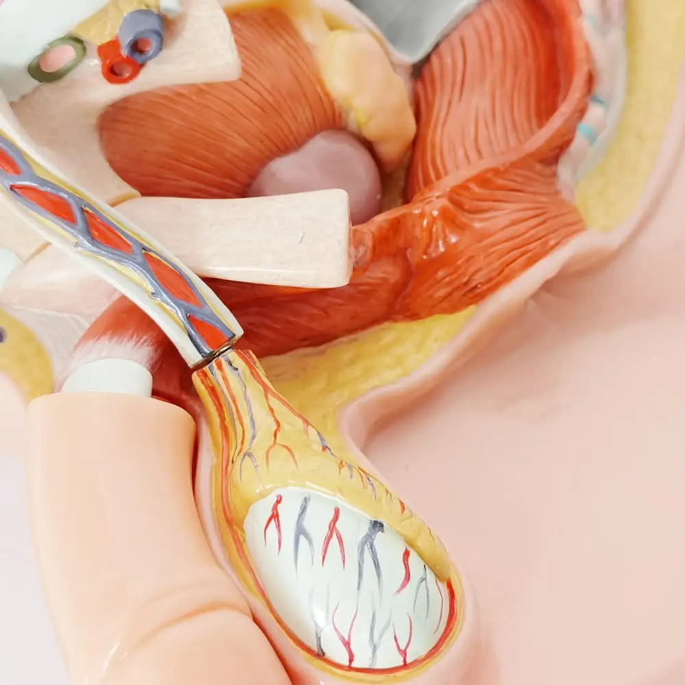 • Detailed representation of male reproductive, urinary, and muscular anatomy.