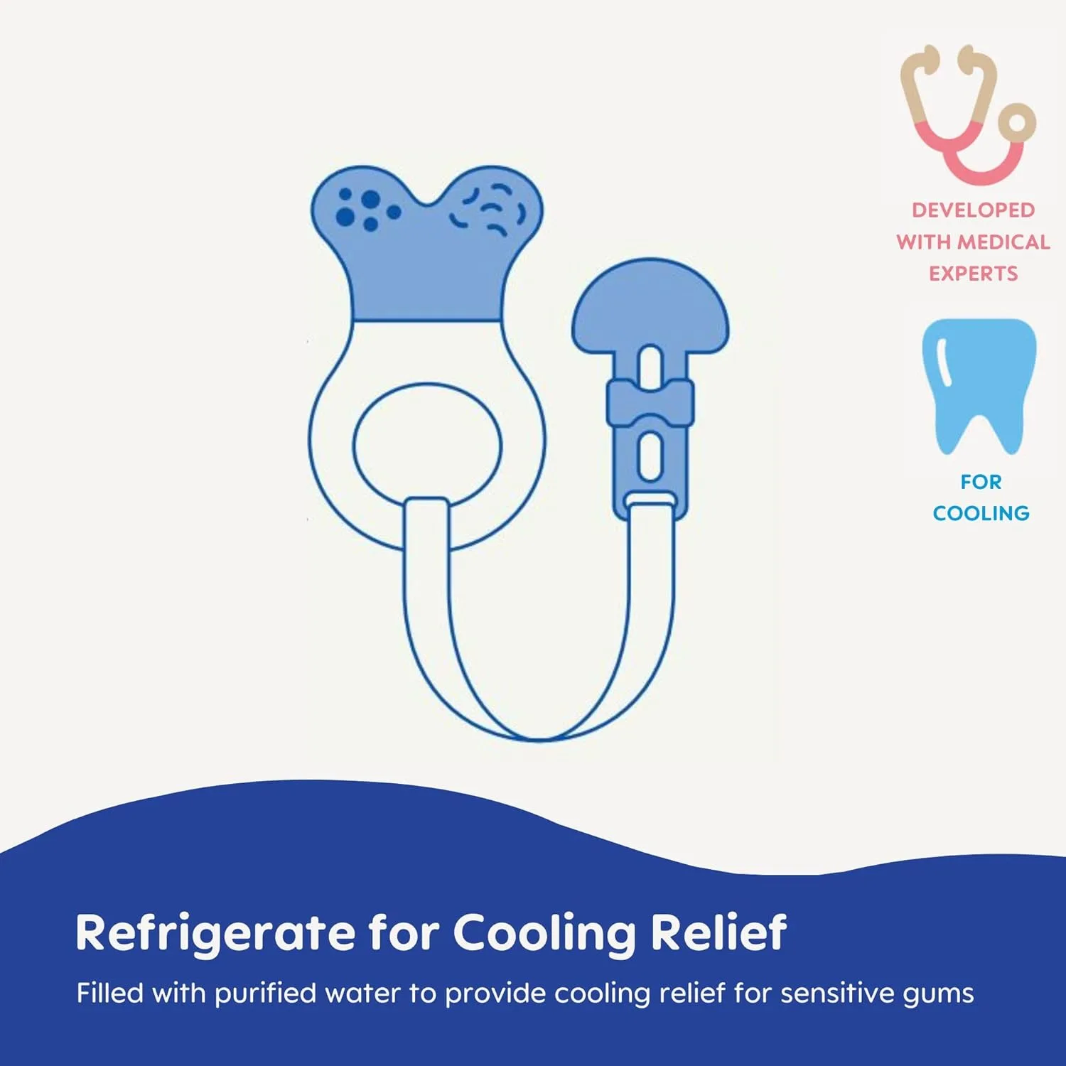 • Massages and cools sore gums.