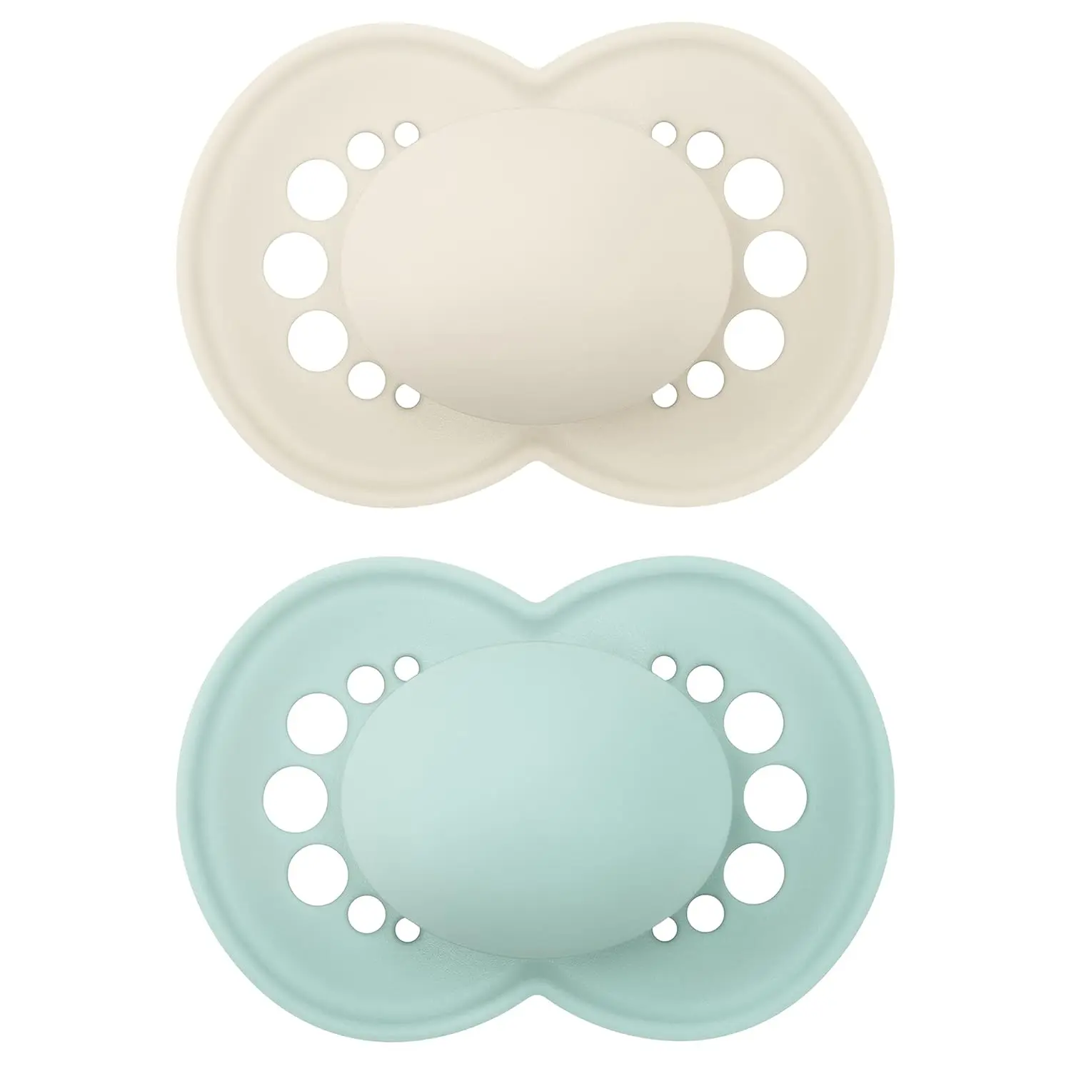 Soothe your little one with the MAM Original Matte Pacifier, designed for babies 6 months and older. This convenient 2-pack ensures you always have a clean pacifier on hand, whether you’re at home or on the go. MAM pacifiers are engineered with baby’s comfort and development in mind, featuring a symmetrical nipple shape that’s always right-side up, eliminating fuss and frustration for both you and your baby. Crafted from BPA-free silicone, the SkinSoft material provides a familiar and comforting feel, encouraging acceptance. The symmetrical shape is ideal for healthy jaw and teeth development, promoting proper oral posture as your baby grows. MAM understands the importance of hygiene, which is why each pack includes a sterilizing storage case. Simply add water and microwave for 3 minutes to sterilize the pacifiers – no need for a separate bulky sterilizer, making travel easier than ever. The pacifier shield is thoughtfully designed with a curved shape and generous openings to allow for ample airflow, keeping your baby comfortable and preventing skin irritation. These cute pacifiers are not only functional but also stylish, adding a touch of fun to your baby’s everyday essentials. The matte finish gives them a modern and sophisticated look. From newborn to toddler, MAM is there every step of the way, providing innovative and safe products for your growing family.