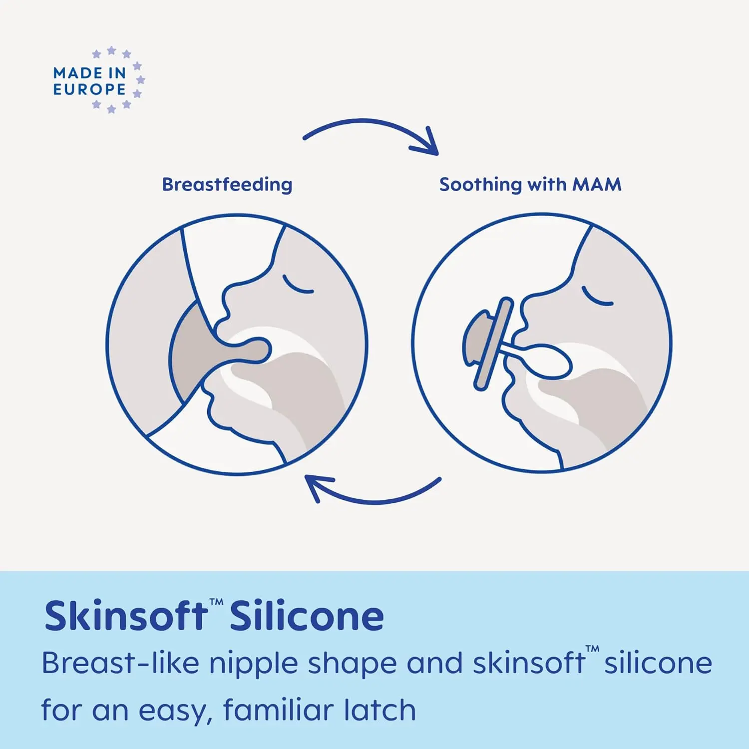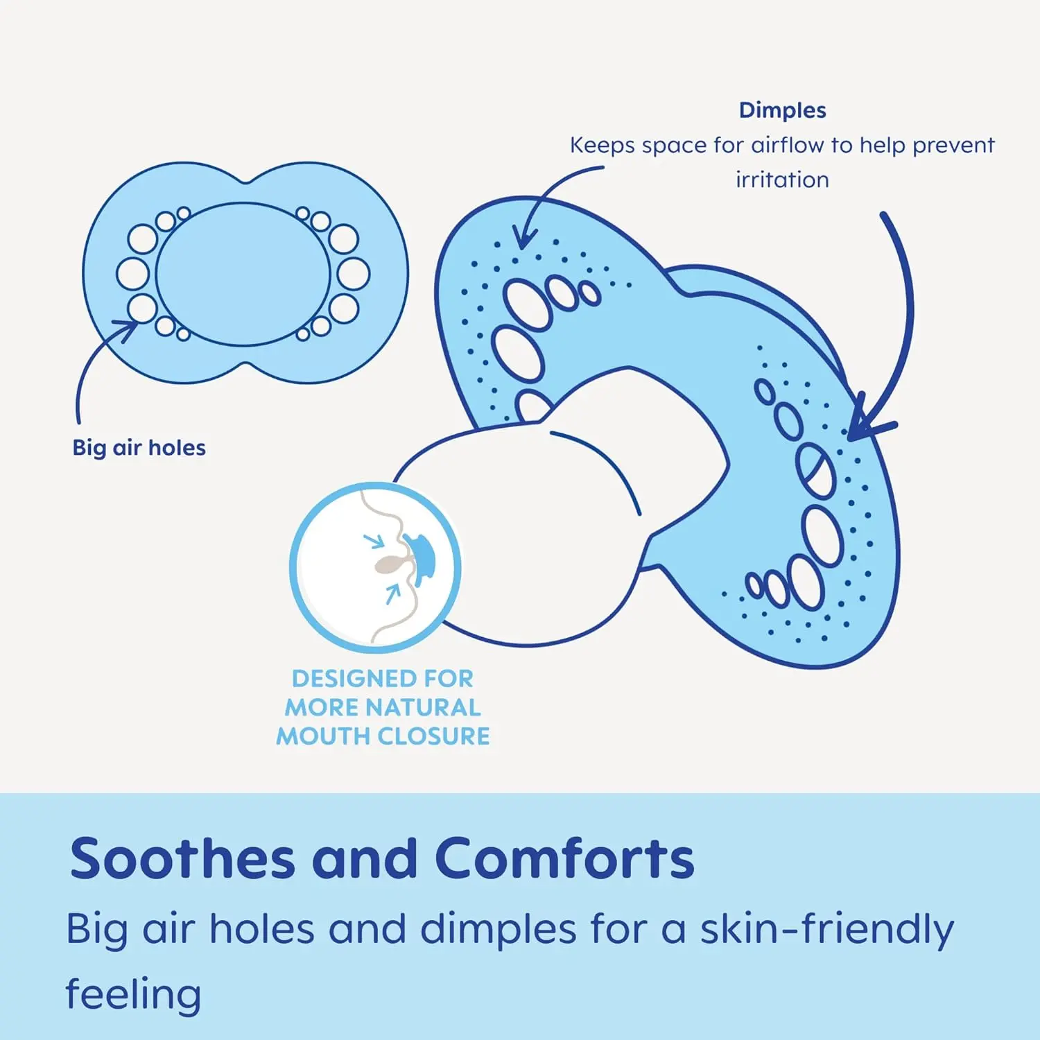 • SkinSoft Silicone: BPA-free silicone with a silky texture that feels familiar to babies.