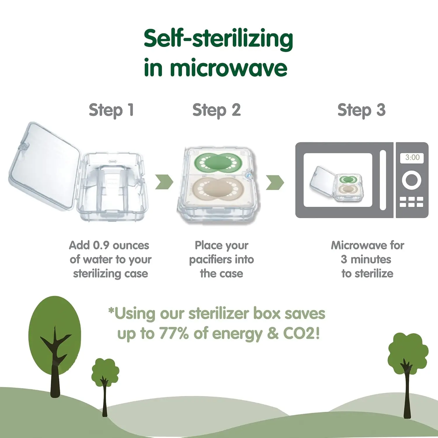 • Self-sterilizing case saves energy & CO2