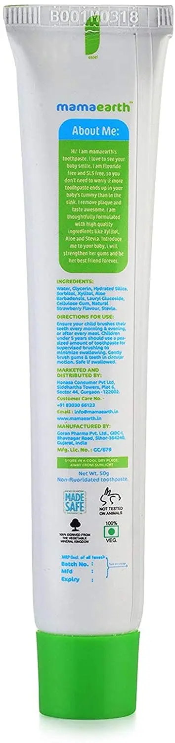 Mamaearth Natural Kids Toothpaste in Berry Blast is the perfect way to introduce your little one to the importance of oral hygiene. This toothpaste is specially formulated with 100% natural ingredients, ensuring a safe and effective clean for your child’s delicate teeth and gums. Our unique formula is packed with high-quality ingredients like xylitol, aloe vera, and stevia, all known for their beneficial properties. Xylitol helps prevent cavities, aloe vera soothes gums, and stevia provides a natural sweetness that kids love. This toothpaste not only cleanses teeth perfectly, promoting good dental and oral hygiene, but it also tastes delicious! The tasty strawberry flavor appeals to children’s developing palates, making brushing a fun and enjoyable experience. We understand that little ones can sometimes swallow toothpaste, which is why our formula is safe if swallowed. It creates a subtle, natural foam without the use of SLS (Sodium Lauryl Sulfate), a harsh chemical found in many conventional toothpastes. Start your child on the path to a lifetime of healthy smiles with Mamaearth Natural Kids Toothpaste. Help them develop the early habit of brushing their teeth after every meal with a toothpaste they will actually look forward to using! This gentle and effective formula is the perfect choice for parents who prioritize their child’s health and well-being. Give your child the gift of a healthy, happy smile with Mamaearth Natural Kids Toothpaste – Berry Blast.