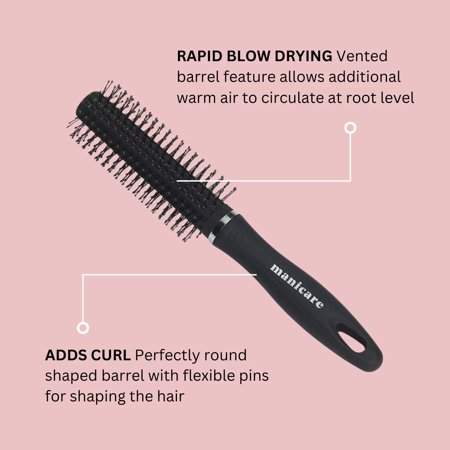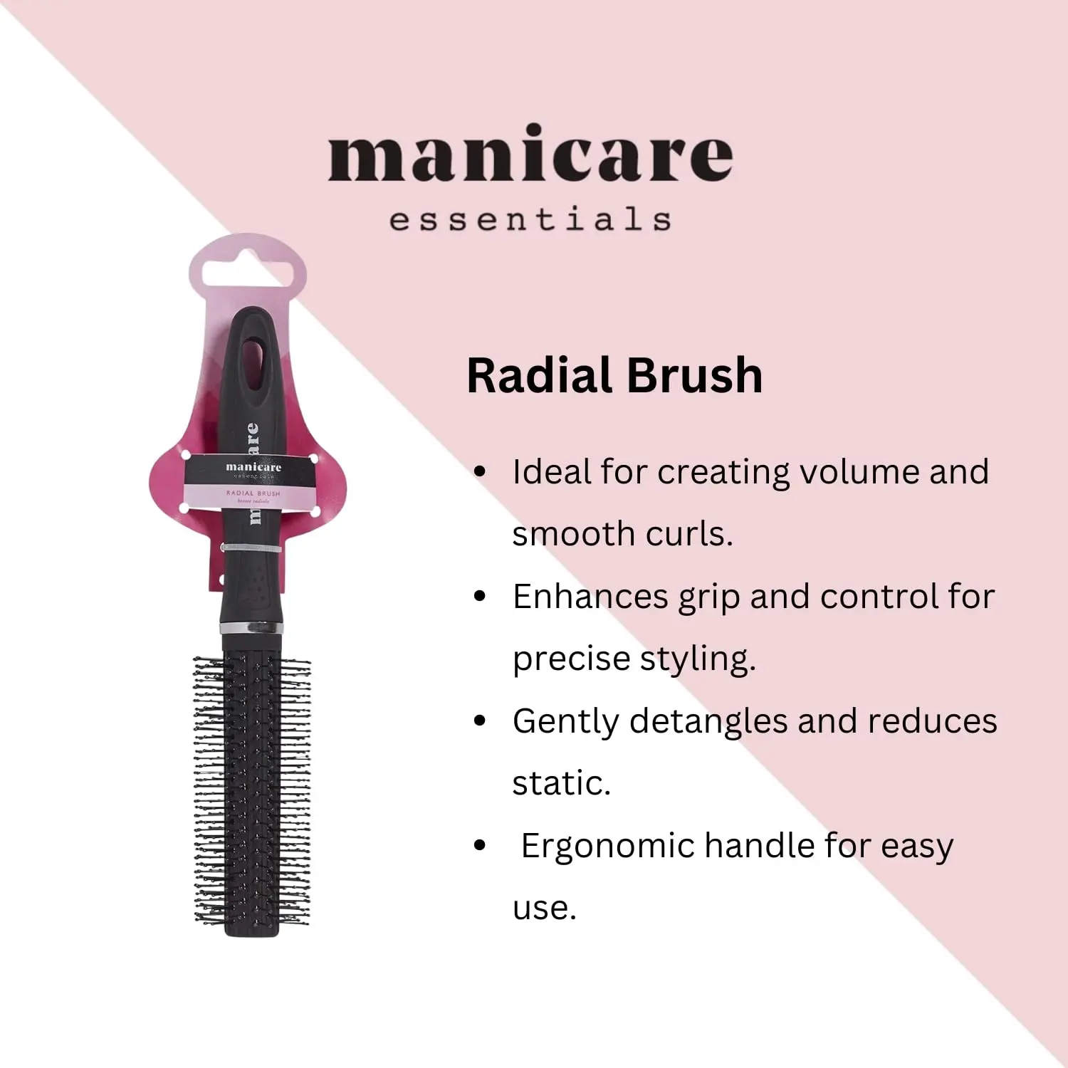 Achieve salon-worthy blowouts at home with the Manicare Radial Brush. This versatile styling tool is designed to create volume, smooth frizz, and add beautiful curls, all while you dry your hair. The rounded brush head allows for effortless shaping and styling, making it ideal for achieving a variety of looks, from bouncy waves to sleek, straight styles. Whether your hair is wet or dry, this brush is gentle enough for everyday use and suitable for all hair types and lengths. Experience a comfortable styling session with the ball-tipped bristles that glide smoothly through your hair, preventing tangles, snags, and breakage. The Manicare Radial Brush is part of an extensive range of high-quality beauty accessories from Manicare, ensuring you have everything you need for a complete pampering experience. Plus, with Manicare’s 100% product guarantee, you can be confident in the quality and durability of this essential styling tool. Upgrade your hair routine and discover the difference the Manicare Radial Brush can make! Style your hair while blow drying and create your own unique look.