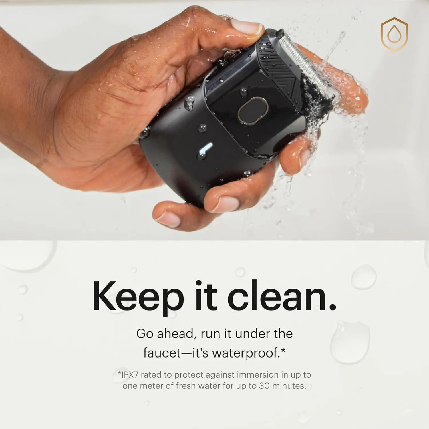 Cleaning is a breeze thanks to The Handyman’s waterproof design. Simply rinse it under the faucet to remove hair and debris. The IPX7 rating ensures it can withstand immersion in up to one meter of fresh water for up to 30 minutes, making cleaning quick, easy, and worry-free. For optimal performance, be sure to let it dry completely before storing.