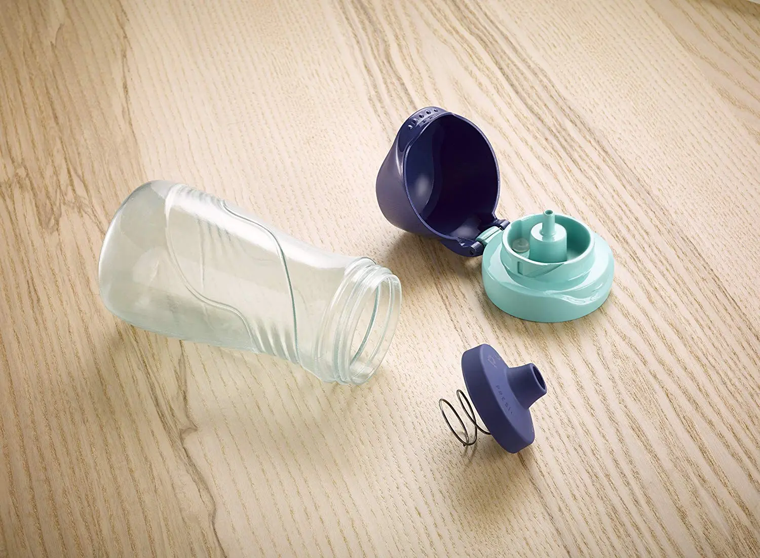 • 100% spill-proof design: Push to drink mechanism prevents leaks.