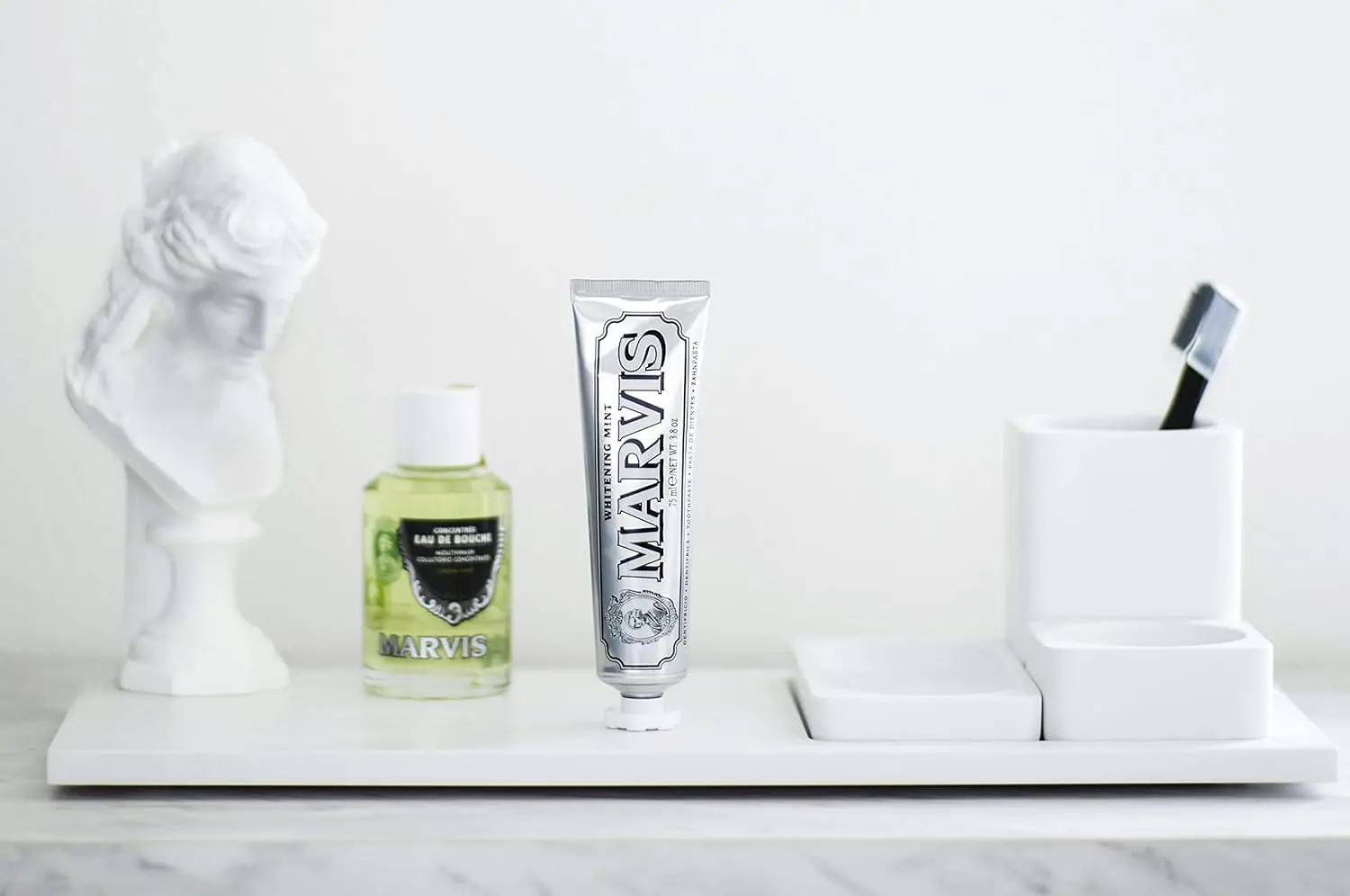 • Distinctive Marvis packaging.