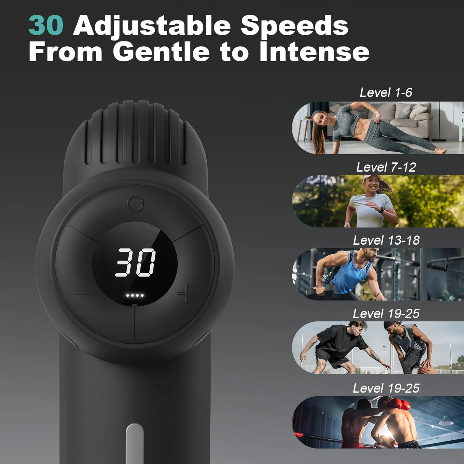• 30 Adjustable Speeds: Customize massage intensity for different muscle needs.