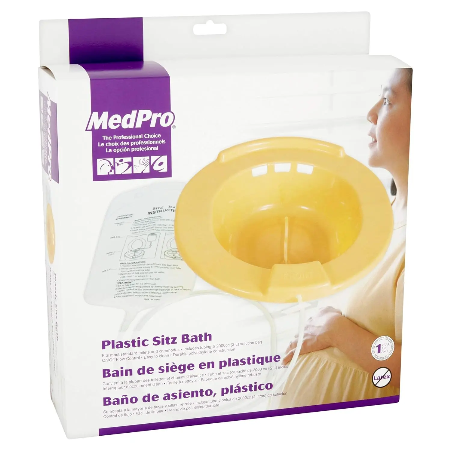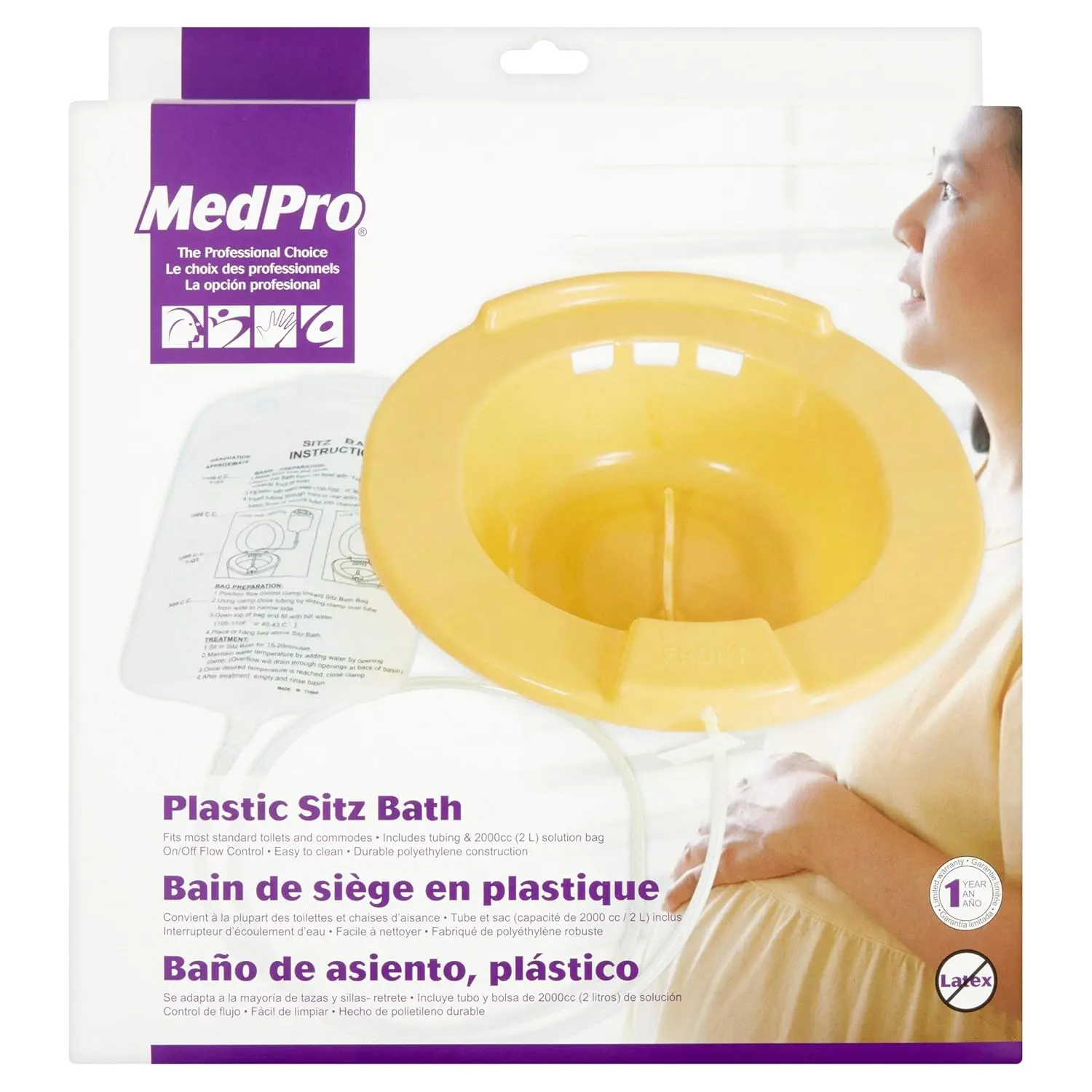 Experience soothing relief and promote healing with the MedPro Sitz Bath. Designed for postpartum care and hemorrhoid treatment, this sitz bath offers a comfortable and convenient way to cleanse and soothe sensitive areas. Its ergonomic design fits most standard toilet bowls, ensuring a secure and stable fit. The included tubing connects to a generous 2000 cc (2L) water bag, providing ample warm water for a therapeutic soak. The slightly contoured edges maximize comfort during use, while the durable plastic construction ensures long-lasting reliability. Whether you’re recovering from childbirth, seeking relief from hemorrhoids, or simply looking for a gentle way to cleanse, the MedPro Sitz Bath offers a simple and effective solution. This sitz bath is easy to clean and store, making it a practical addition to any bathroom. It’s a non-invasive way to care for your personal hygiene and provides relaxation in the comfort of your own home. Say goodbye to discomfort and hello to gentle relief with the MedPro Sitz Bath. The durable plastic construction ensures longevity, making it a reliable addition to your personal care routine. Its simple design allows for effortless cleaning and maintenance. The comfortable contoured edges provide support and prevent any discomfort during use. By allowing for a localized soak, you can target problem areas and experience effective relief, promoting faster healing and soothing irritation. This sitz bath is designed to be user-friendly and efficient and is a practical and hygienic solution for a variety of personal care needs. It offers a simple and reliable solution for achieving optimal hygiene and wellness in the privacy of your own home.