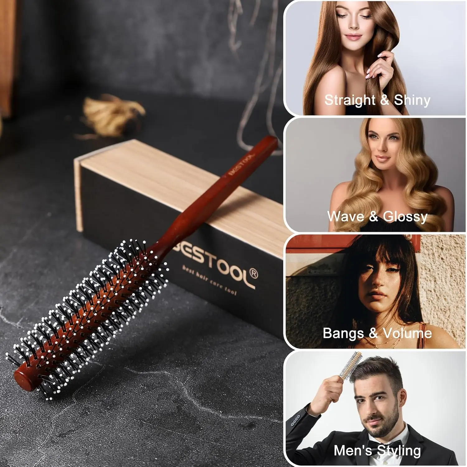 The nylon bristle brush effortlessly penetrates normal to thick hair, promoting shinier, softer, and healthier hair with daily use. Achieve your desired look effortlessly! For those who love classic styles, this small round hair brush is the perfect rolling brush for men to spice up pomps and quiffs, adding volume and definition to any hairstyle.