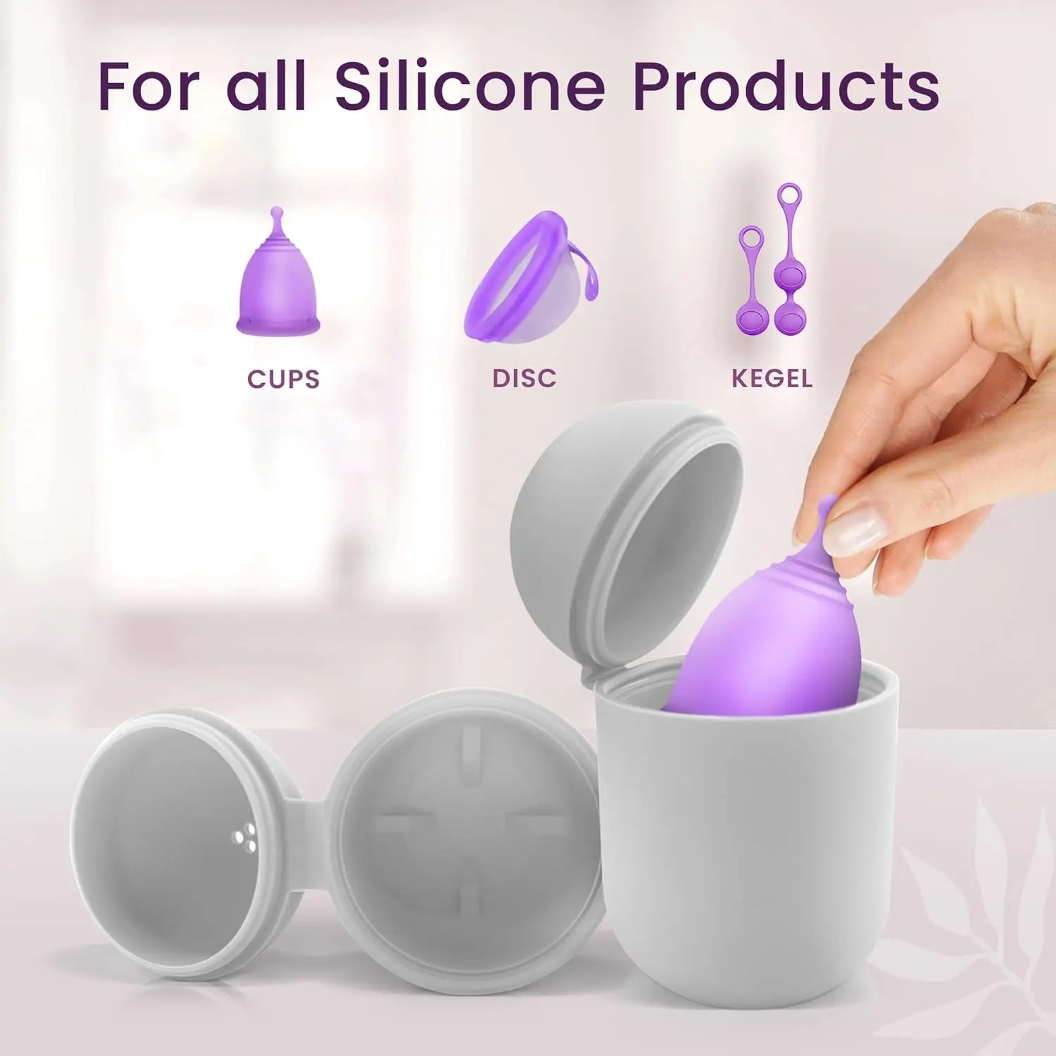 Keep your menstrual cup or disc discreetly stored and sanitized with our Menstrual Cup Case Sterilizer! This innovative silicone case offers a private and convenient solution for cleaning and carrying your period products. Designed with discretion in mind, the case allows you to keep your menstrual cup hidden in plain sight, making cleaning sessions private and stress-free. More than just a storage container, this multipurpose case doubles as a sterilizer. Whether you need a quick rinse with water or a more thorough microwave steam cleaning, this case has you covered. Its spill-proof and leak-proof design ensures mess-free cleaning, even when shaking, making it ideal for use in public restrooms or while traveling. Made from durable, food-grade silicone, this menstrual cup wash container is built to last, offering a sustainable and eco-conscious alternative to plastic containers. Its capsule design is compatible with any menstrual cup or disc, regardless of size or brand, providing a universal solution for all menstrual cup users. Enjoy discreet storage, convenient cleaning, and a sustainable solution with this essential menstrual cup accessory. Say goodbye to bulky and obvious storage solutions and embrace the privacy and practicality of our Menstrual Cup Case Sterilizer.