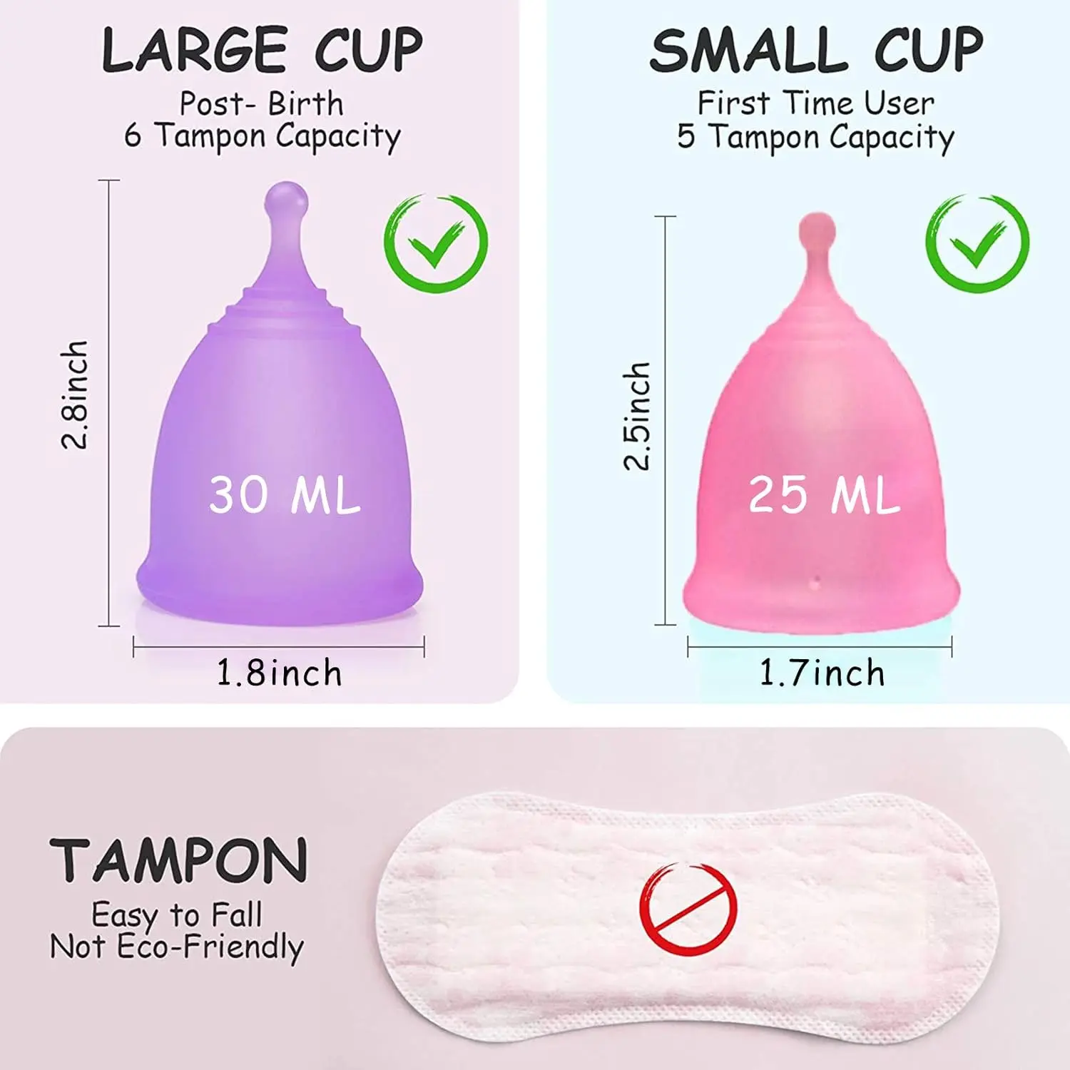 • Includes 1 menstrual cup sterilizer, 1 large cup, and 1 small cup.