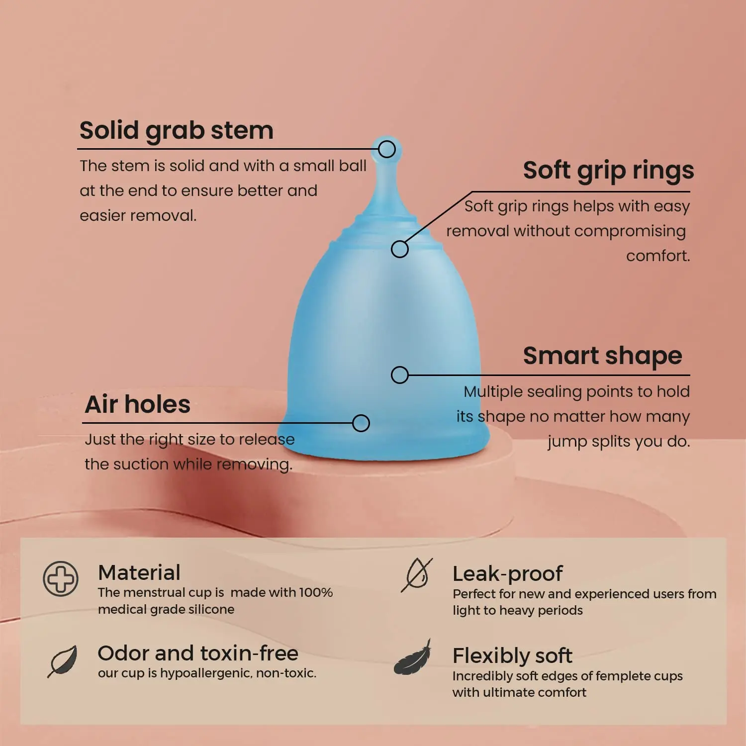 • Large Cup Capacity: Equivalent to 3 tampons