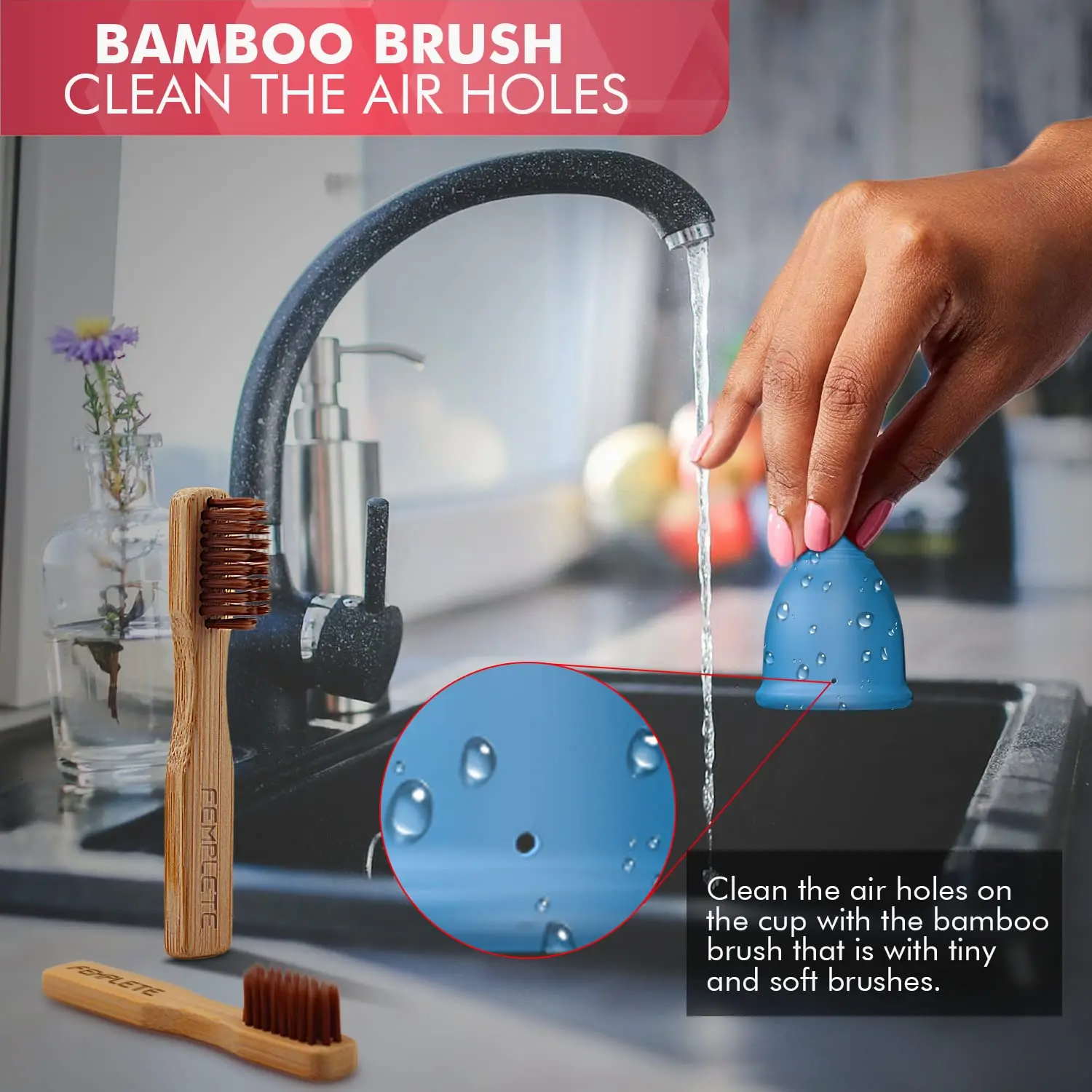 • Includes: 1 Small Cup, 1 Large Cup, 1 Sterilizing Cup, 1 Bamboo Brush, 1 Carry Pouch