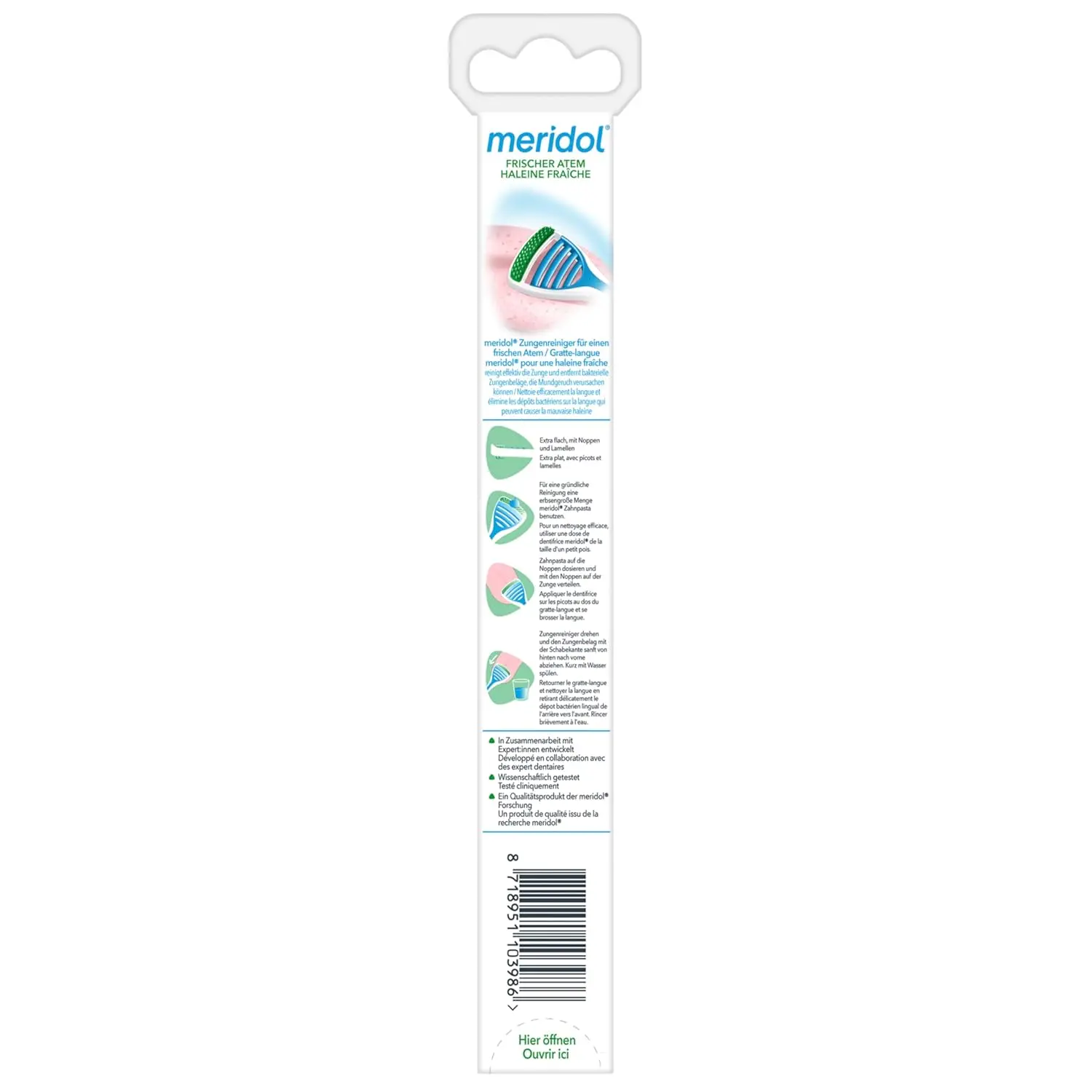 Fight bad breath at its source with the Meridol Safe Breath Tongue Cleaner. This innovative tool is designed for effective tongue cleansing, a crucial step in maintaining optimal oral hygiene. The tongue’s surface can harbor significant amounts of bacteria, food debris, and dead cells, all contributing to unpleasant breath. Unlike brushing alone, the Meridol Safe Breath Tongue Cleaner is specifically engineered to reach and remove these odor-causing culprits. Its extra flat design allows for comfortable access to the back of the tongue, where most bacteria reside. The combination of knobs and a blade work synergistically to loosen and lift away debris, leaving your tongue feeling clean and refreshed. Regular use of the Meridol Safe Breath Tongue Cleaner can significantly reduce bad breath, improve your sense of taste, and contribute to a healthier oral environment. Incorporate this simple yet effective tool into your daily routine and experience the confidence of fresh breath. Don’t just mask bad breath, eliminate it! The Meridol Safe Breath Tongue Cleaner is your secret weapon for a cleaner, healthier mouth and a more confident you. Its ergonomic design ensures a comfortable grip and easy maneuverability, making tongue cleaning a breeze. Say goodbye to embarrassing bad breath and hello to a fresher, cleaner mouth with the Meridol Safe Breath Tongue Cleaner. This tool is an essential addition to any oral hygiene regimen, providing a simple yet powerful way to improve your overall oral health and well-being. Experience the difference a clean tongue can make.