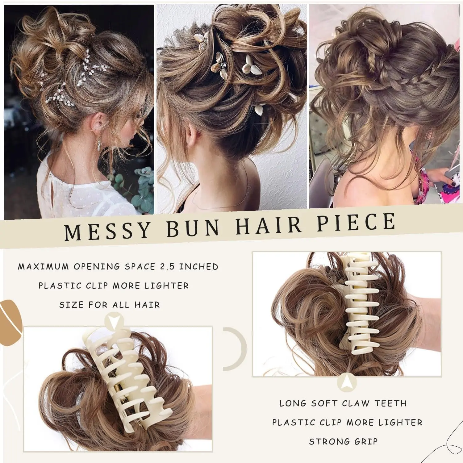 Get a stylish messy bun instantly! This claw clip hairpiece adds volume and texture, blending seamlessly with your hair. Perfect for any occasion!