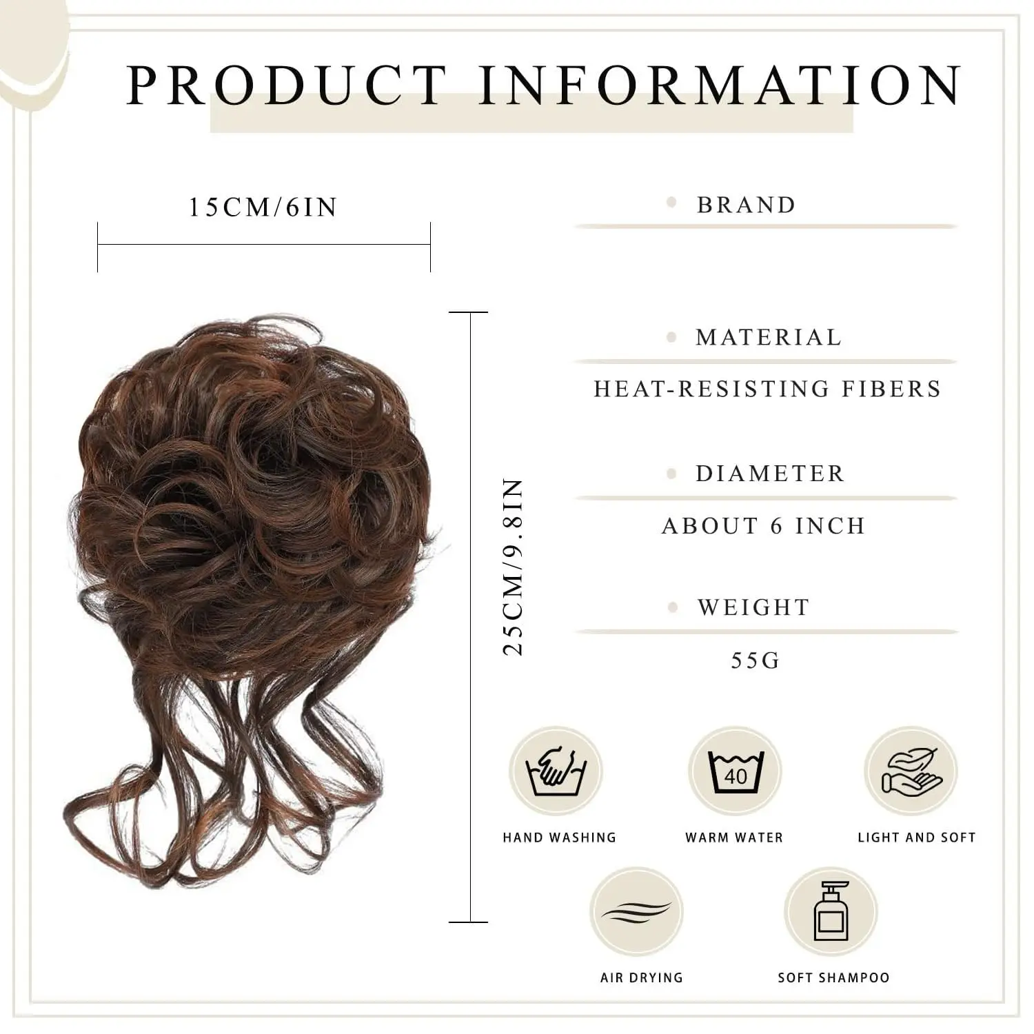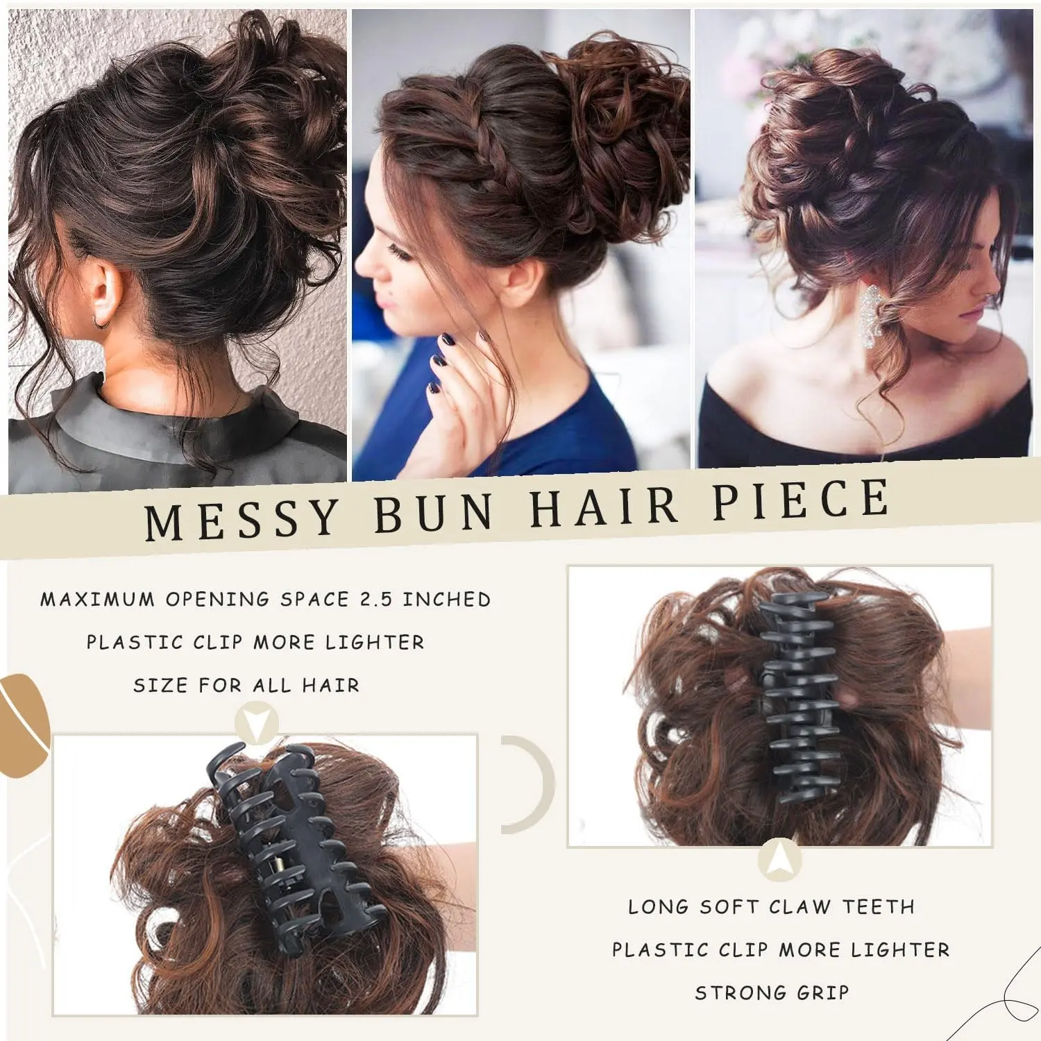Achieve an instant updo with our Messy Bun Hair Piece Claw Clip! Made with quality synthetic fiber for a natural look and easy application. Perfect for any occasion!
