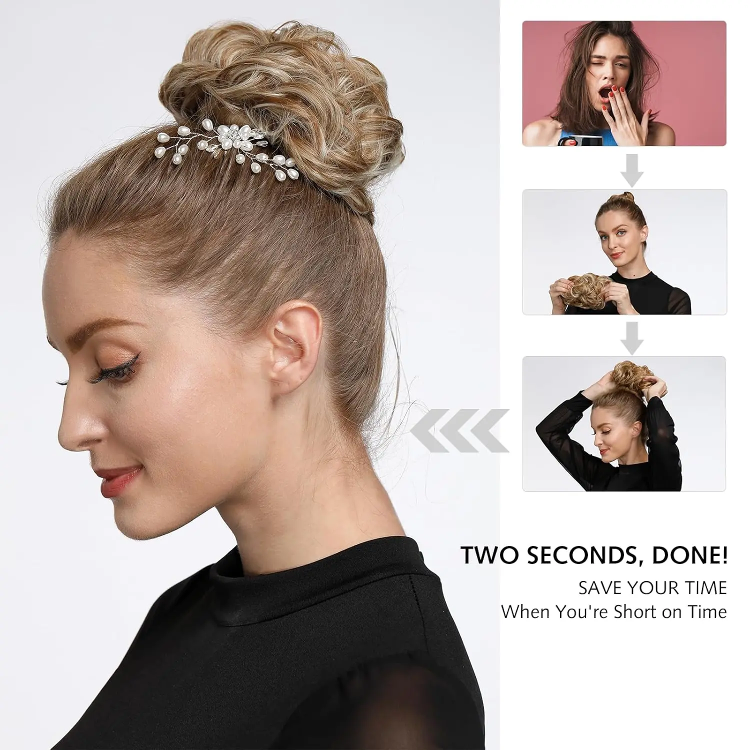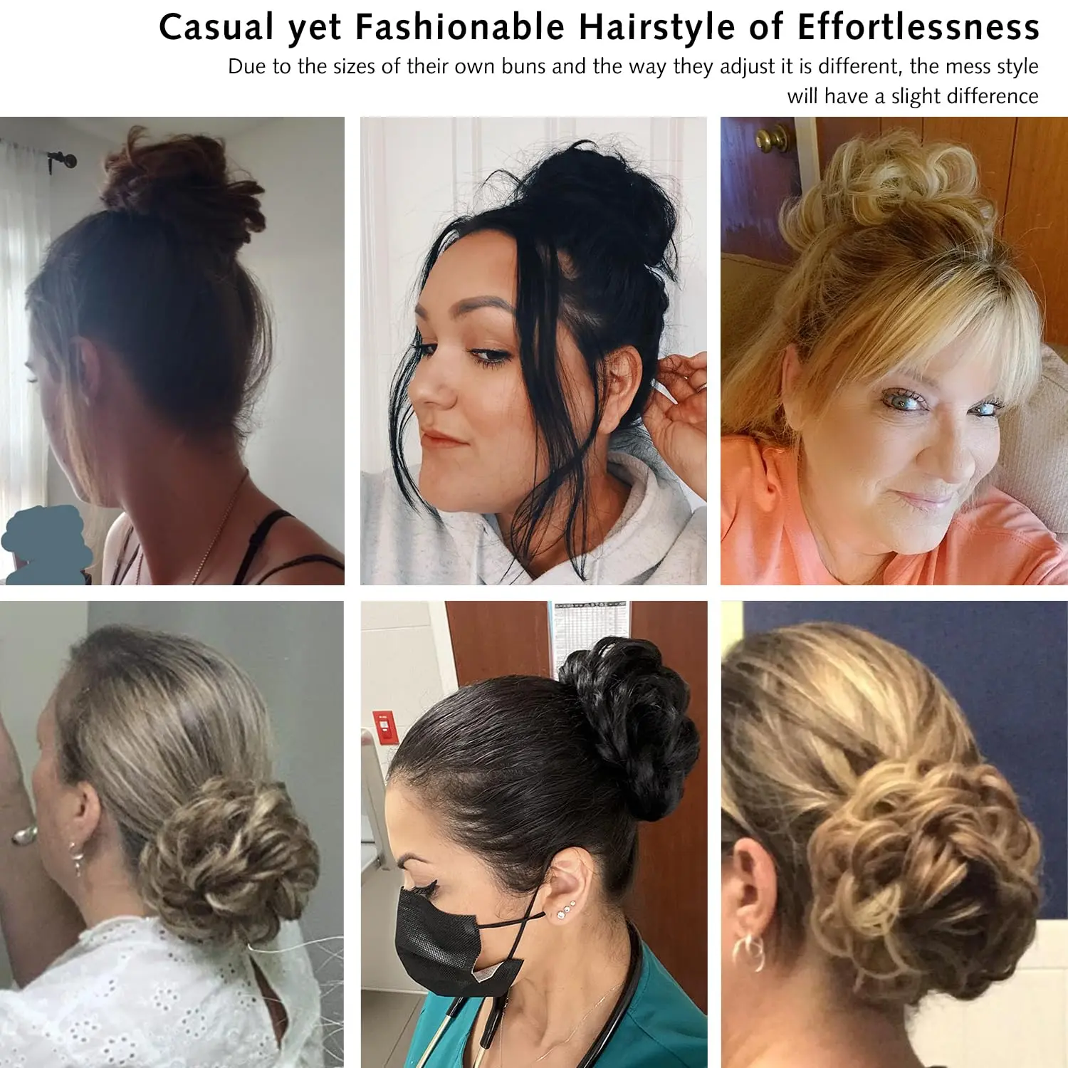 Elevate your everyday style in seconds with our Messy Bun Hair Piece Updo Extension! Designed for quick and easy application, this hairpiece effortlessly adds volume and fullness to your updo or ponytail. Crafted from high-quality synthetic hair fibers, it blends seamlessly with your natural hair for a realistic and natural look. The elastic hair tie ensures a secure and comfortable fit for all-day wear. Whether you’re heading to a wedding, prom, date night, or simply want to add a touch of flair to your everyday look, this messy bun extension is the perfect accessory. Its heat-resistant synthetic fibers allow for washing and styling with ease. Simply wash with shampoo, add a touch of perfume for a delightful scent, and allow it to air dry for best results. Enhance your unique style and stand out from the crowd with this must-have hair accessory. For even more volume, we recommend wearing two pieces together. Experience the confidence and beauty that comes with a perfectly styled updo, without the hassle. Add this versatile and easy-to-use hairpiece to your collection today! Enjoy a natural-looking, voluminous updo in seconds with our easy-to-use messy bun extension, designed for quick styling and a comfortable fit.