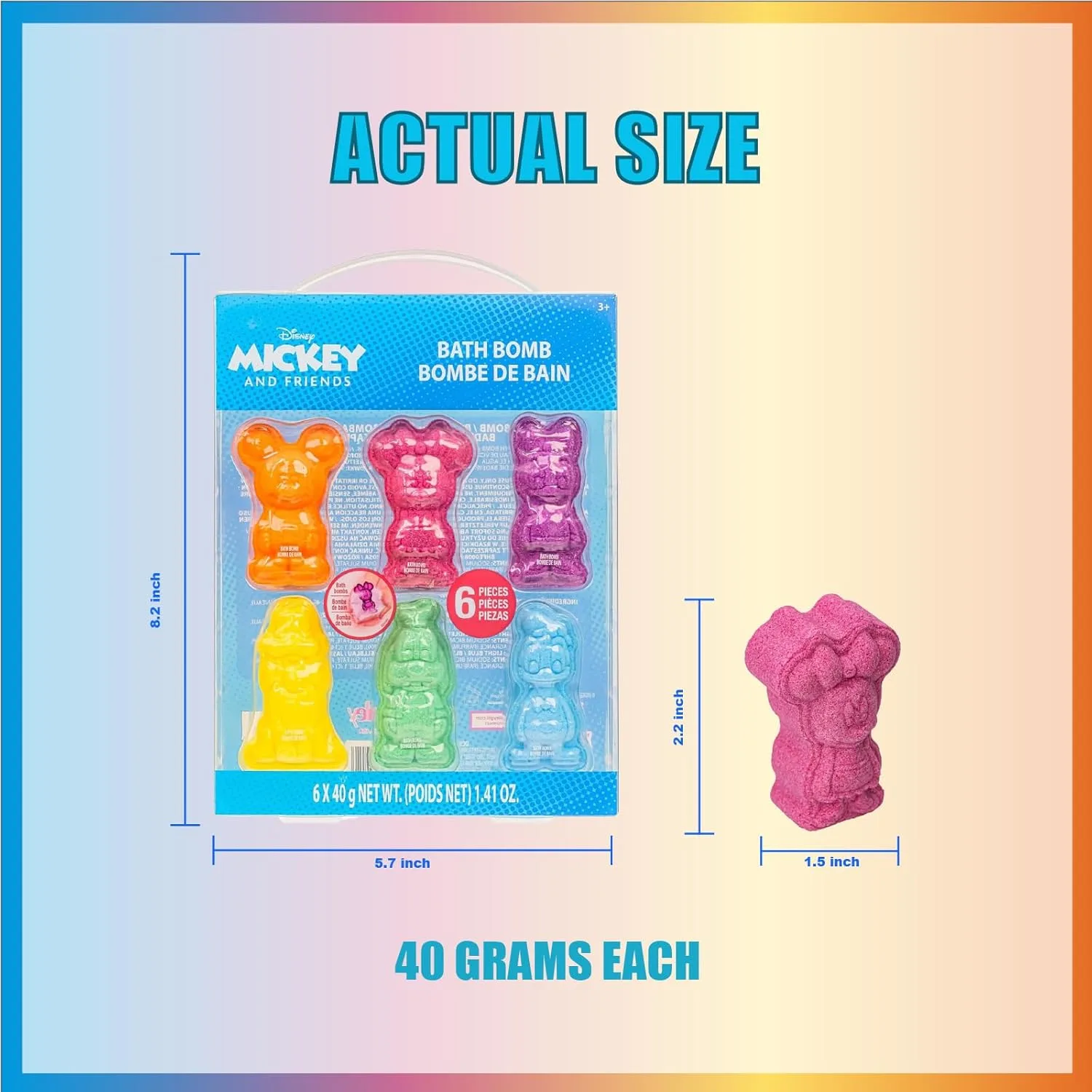 Make bath time magical with this 6-pack of Mickey Mouse themed bath bombs! Each bath bomb is bubble gum scented and shaped like your favorite characters. Non-toxic and mess-free fun!