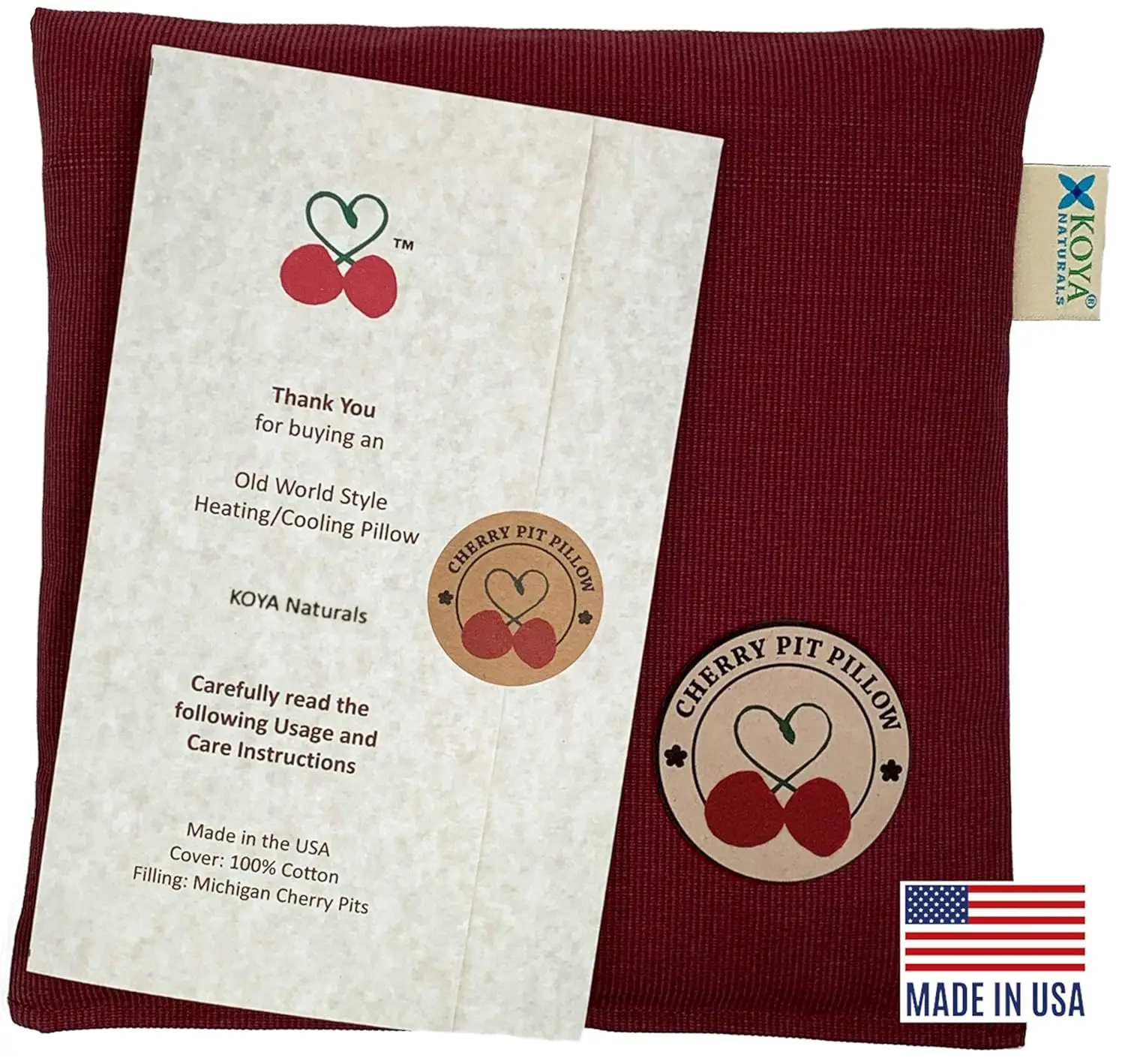 Experience natural pain relief with this cherry pit filled heating pad. Soothe muscles, joints, and stomach pain with its gentle heat or cooling sensation. Made in the USA.