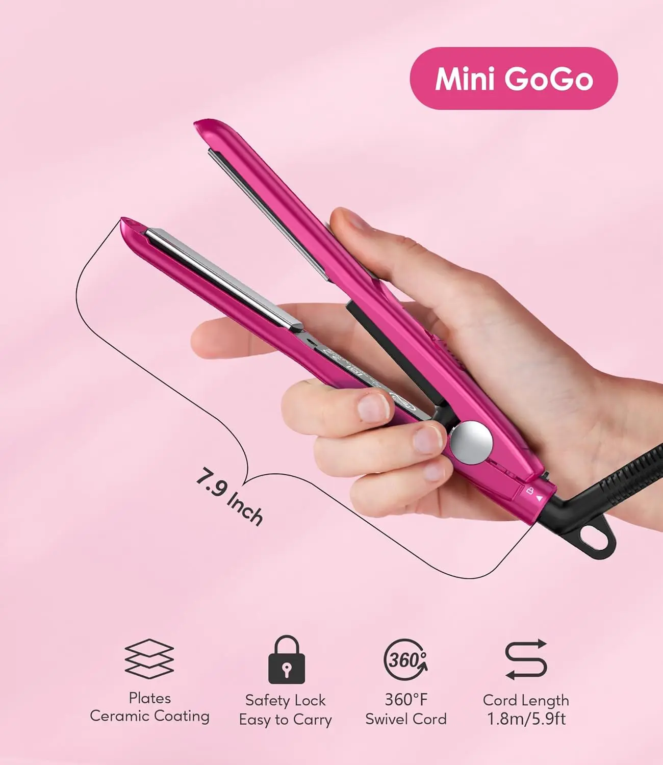 Achieve salon-worthy styles on the go with the Terviiix Mini Flat Iron! This super-compact and lightweight straightener is your perfect travel companion, easily fitting into handbags or travel cases. Specifically designed for short hair, bangs, and touch-ups, the 7.9-inch mini flat iron weighs only 0.48 pounds, making it incredibly portable. Tame flyaways, smooth cowlicks, and perfect your edges with precision. The ceramic-coated plates glide effortlessly through hair, preventing pulling and snagging, while the 3D floating plate ensures even heat distribution for consistent results. More than just a straightener, this versatile tool also creates bouncy, tight curls thanks to its rounded edge design. The dual voltage compatibility (100-240V) makes it ideal for international travel – just bring an adapter! The 360° swivel cord prevents tangling, offering a hassle-free styling experience. Get ready to experience the freedom of creating sleek, straight looks or gorgeous curls, wherever you are. The compact design and dual functionality make it an essential styling tool for those with short hair, bangs or who are always on the go! Say goodbye to bad hair days while traveling!