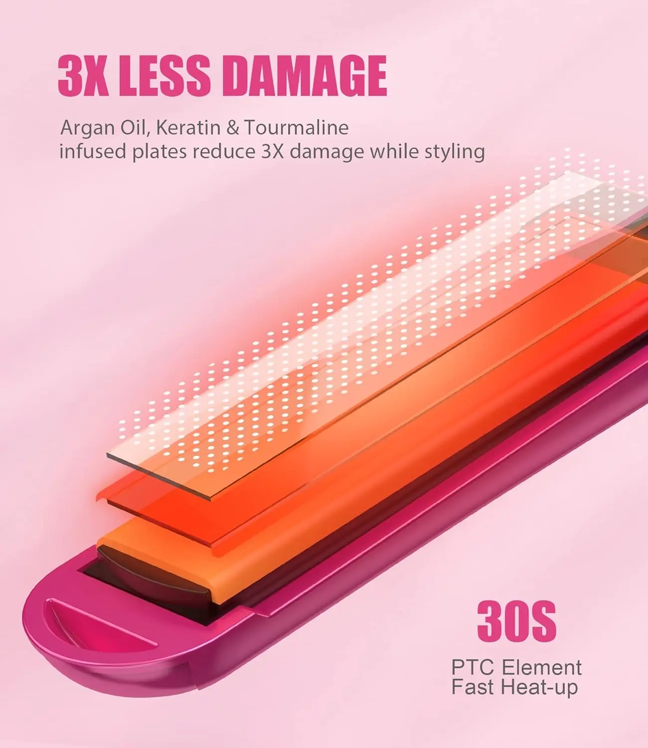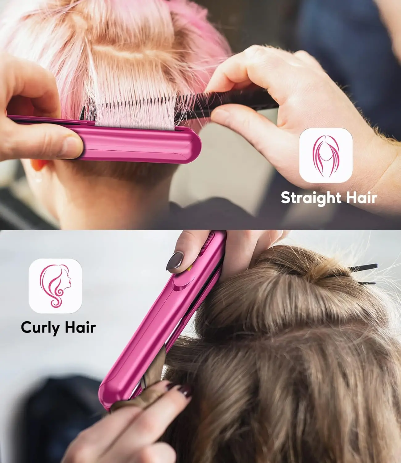 • 2-in-1 Design: Straightens and curls hair.