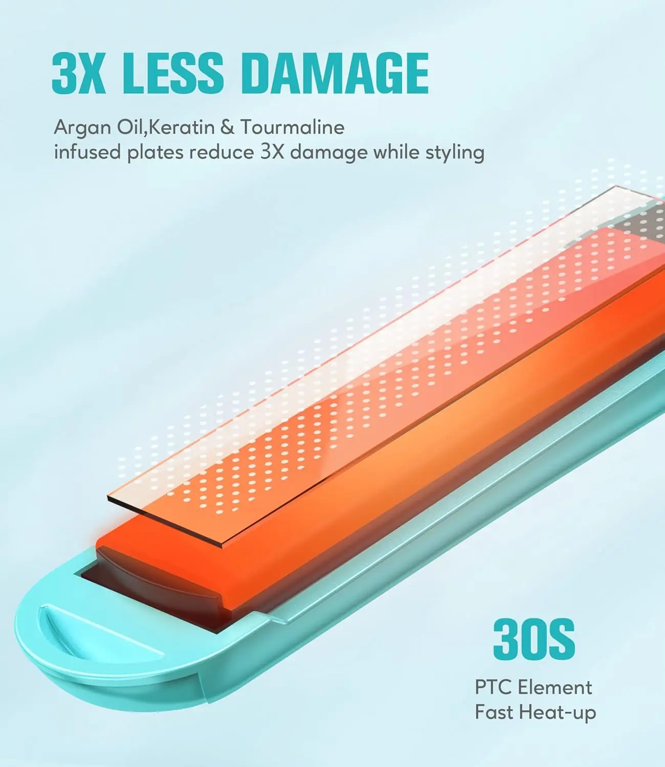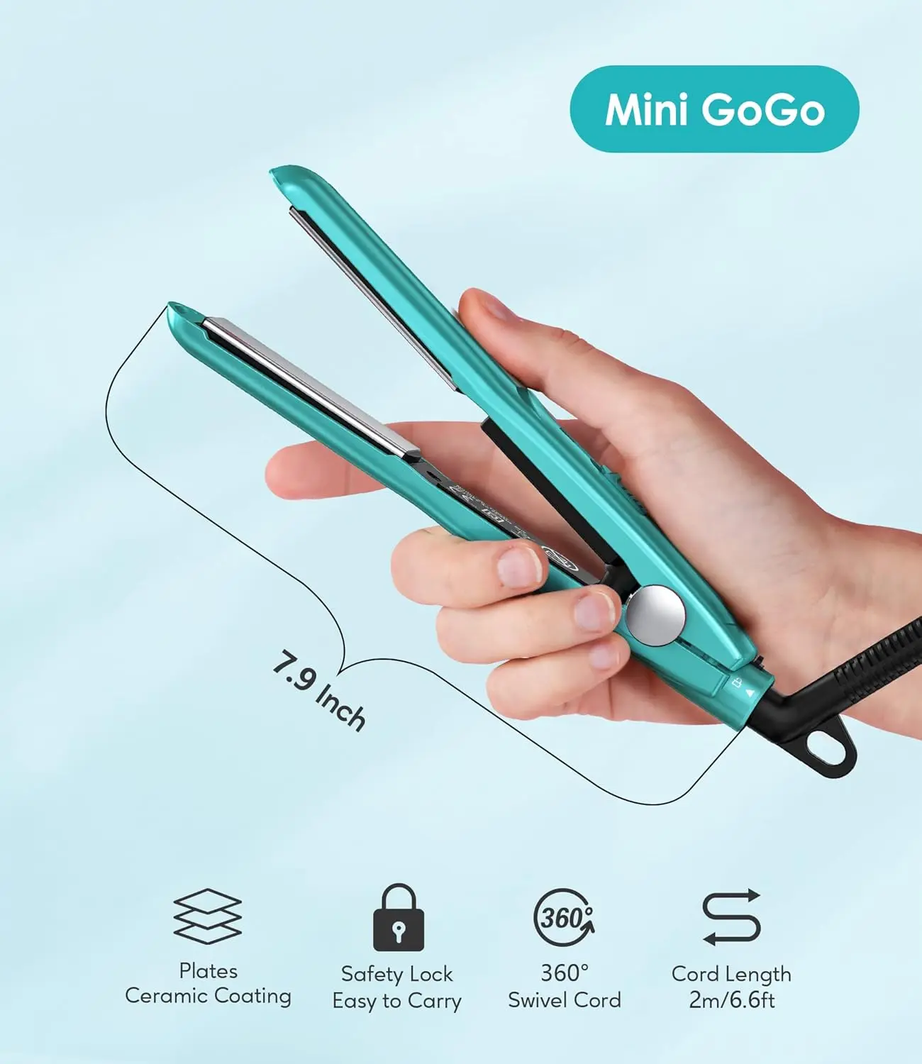 Achieve salon-worthy styles on the go with the Terviiix Mini Hair Straightener! This ultra-compact and lightweight flat iron is designed for precision styling, making it perfect for short hair, bangs, edges, and beards. Its super mini size (20cm) and featherlight weight (218g) make it a must-have travel companion, easily fitting into your handbag or suitcase. The ceramic-coated plates glide smoothly through your hair, minimizing pulling and damage. The 3D floating plate design ensures even heat distribution and prevents hair from getting stuck. Not just for straightening! The round edge design allows you to create beautiful curls and waves. This 2-in-1 tool gives you the flexibility to switch up your look effortlessly. With dual voltage compatibility (100-240V), this mini straightener is ready for international travel. The 360° rotatable cable prevents tangling, providing a hassle-free styling experience. Whether you’re touching up your bangs, smoothing flyaways, or creating defined curls, this mini hair straightener is the perfect solution for achieving your desired look anytime, anywhere. Don’t let its small size fool you; it packs a powerful punch when it comes to styling performance! Experience the convenience and versatility of the Terviiix Mini Hair Straightener today! Its compact design and user-friendly features make it an essential tool for anyone who wants to maintain a polished and stylish appearance, whether at home or on the road. Enjoy smooth, sleek hair or bouncy curls with this versatile and portable styling tool. Say goodbye to bad hair days and hello to effortless styling with the Terviiix Mini Hair Straightener.