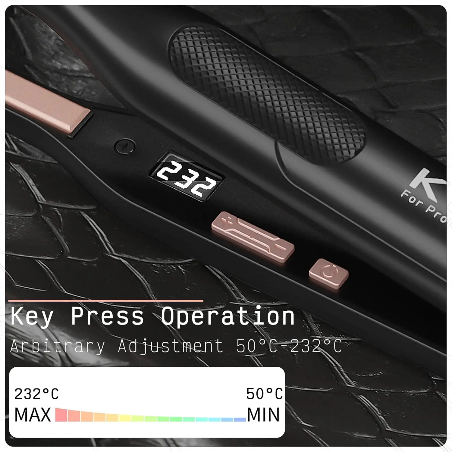 Achieve salon-quality styles on the go with our Mini Pencil Hair Straightener & Curler! This versatile 2-in-1 tool is designed for precision styling, making it perfect for short hair, thick, curly or wavy textures, pixie cuts, and even men’s beards. The ultra-slim 3/10 inch floating titanium plates ensure even heat distribution and effortless glide, minimizing damage and maximizing shine. Our innovative MCH heating technology allows the straightener to reach a temperature of 232°C (450°F) in just 15 seconds, saving you precious time. The adjustable temperature range of 50°C to 232°C (122°F to 450°F) caters to all hair types and beard textures, ensuring optimal results without causing excessive heat damage. Safety is paramount, which is why our straightener features an automatic shut-off function that activates after 60 minutes of inactivity. The titanium plates are coated with ceramic to further protect your hair, locking in moisture, smoothing the cuticle, and eliminating frizz for a sleek, polished finish. Its compact 7mm design and dual voltage compatibility make it the ultimate travel companion, easily fitting into your suitcase for styling anytime, anywhere. Get ready to experience effortless styling and achieve flawless results with our mini straightener and curler.