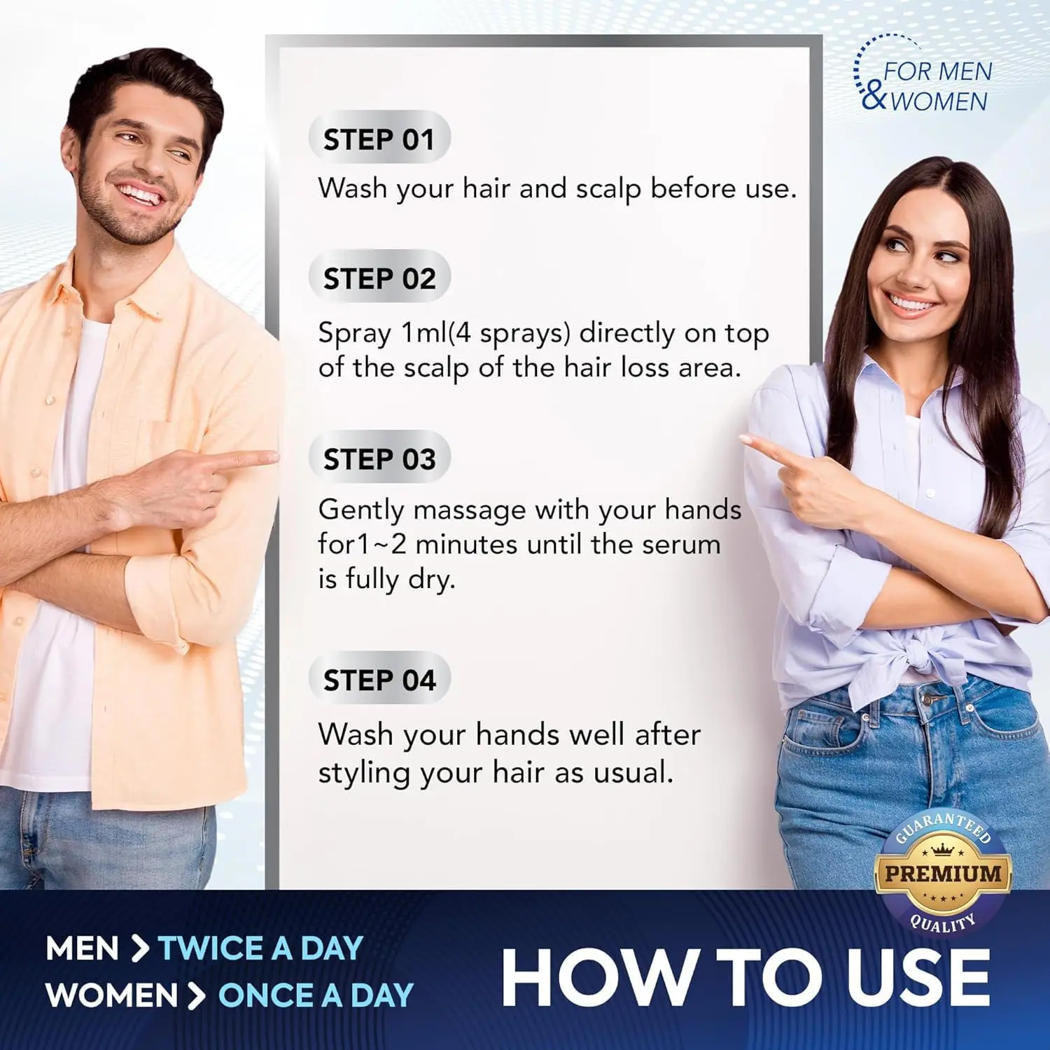 This targeted hair regrowth treatment revitalizes hair follicles, reduces hair loss, and repairs split ends, promoting stronger, healthier hair from the roots. Its safe and fast-acting formula boosts follicle activity, supporting healthy hair regrowth for both men and women. Achieve noticeable improvements in 8–12 weeks with this easy-to-apply spray, seamlessly integrating into your daily haircare routine.