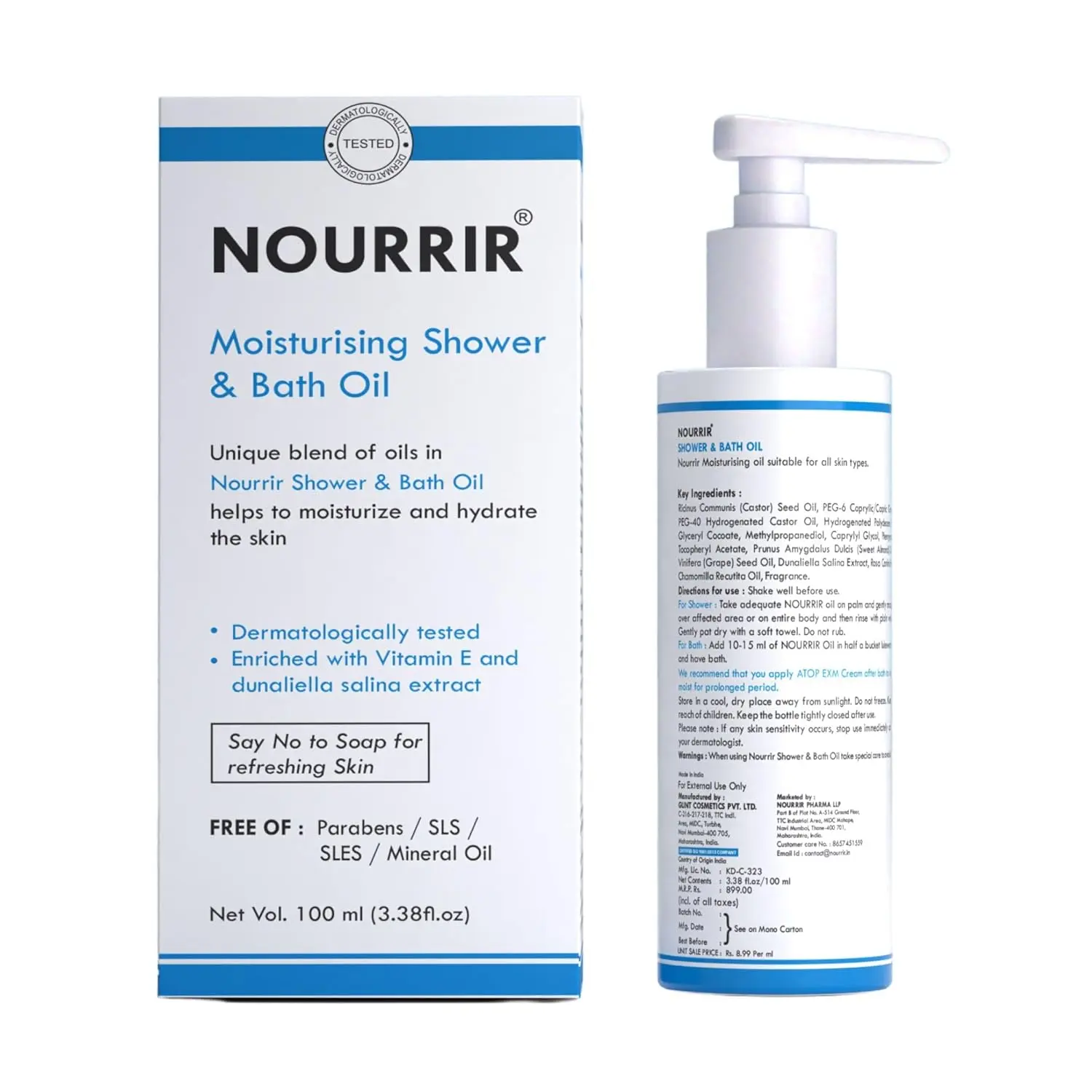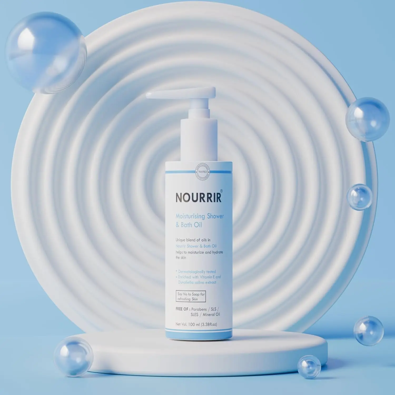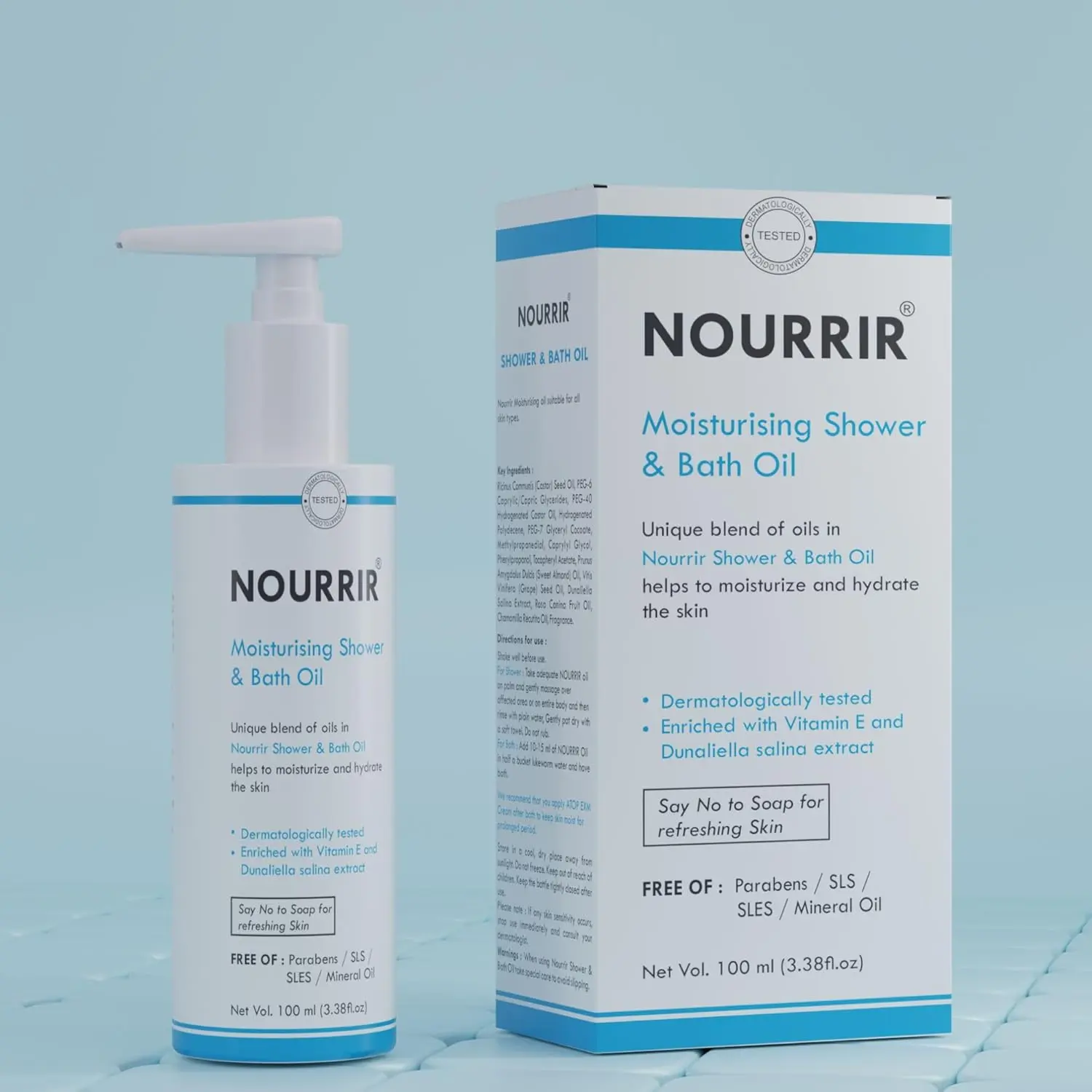 Indulge your skin with NOURRIR Shower & Bath Oil, a luxurious blend designed to cleanse, hydrate, and rejuvenate. Suitable for all skin types, this unique formula combines the power of natural oils to effectively clear impurities, soothe irritation, and lock in essential moisture. Enriched with Vitamin E and completely soap-free, NOURRIR Shower & Bath Oil provides a gentle yet effective cleansing experience. Our carefully selected ingredients work synergistically to deliver visible results. Castor Seed Oil helps prevent wrinkles, fights acne, and reduces puffiness, while Almond Seed Oil treats dry skin, repairs sun damage, and minimizes the appearance of scars. Grape Seed Oil maintains skin moisture, softness, and elasticity, while Rosa Canina Oil hydrates and boosts collagen formation. Chamomile Oil relieves skin irritation and combats dryness, and Dunaliella Salina Algae reduces premature aging and protects against free radical damage. NOURRIR Shower & Bath Oil washes away body impurities, leaving your skin feeling refreshed and your senses awakened. It increases your skin’s immunity and reduces dullness, promoting a healthy, hydrated, youthful, and plump appearance. Experience the transformative power of NOURRIR and reveal your skin’s natural radiance. Incorporate this into your daily routine for optimal results. It will improve skin elasticity and helps with collagen production and makes your skin look youthful. NOURRIR Shower & Bath Oil not only cleanses the skin but also provides a sensory experience that elevates your mood.