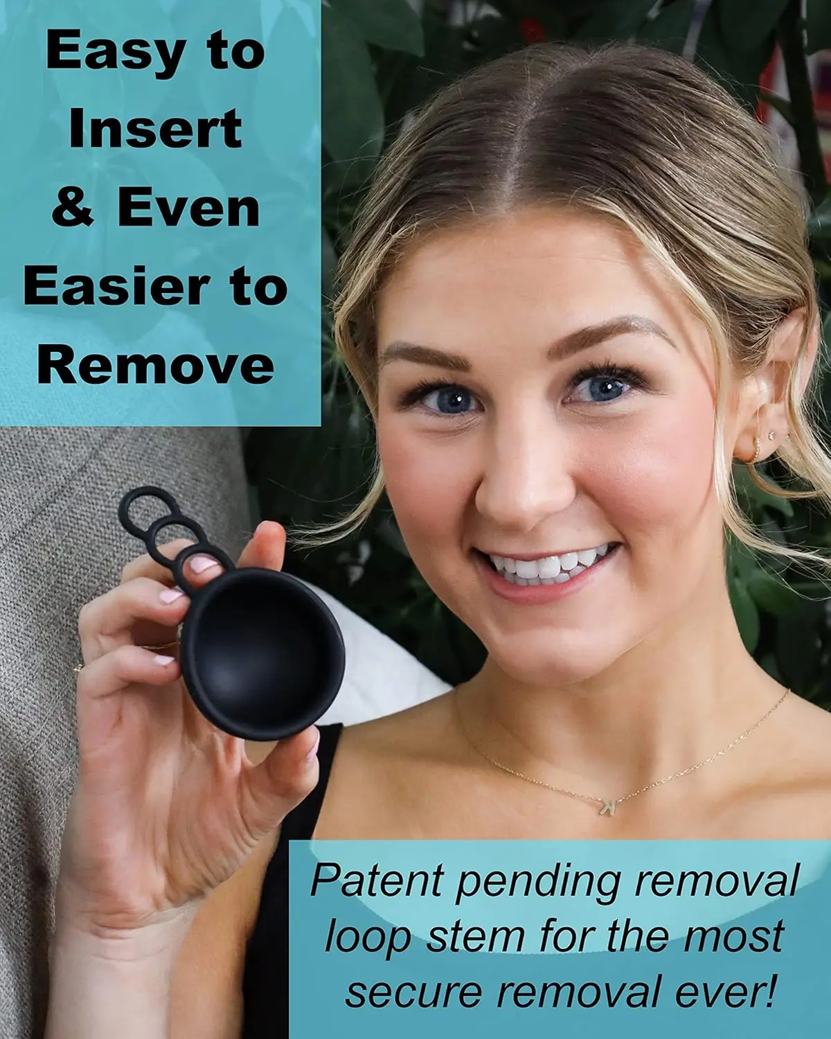 Experience a revolutionary period with MOONTHLIES Menstrual Discs! Ditch the discomfort and inconvenience of traditional period products with our uniquely designed, reusable discs. Featuring a patent-pending design, Moonthlies combines a firm, supportive rim with an ultra-thin collection bowl for optimal comfort and leak protection. Our innovative removal loop stem ensures easy, mess-free removal every time, preventing spills and accidental drops. Made from ultra-soft, medical-grade silicone, Moonthlies discs conform seamlessly to your body’s natural shape, providing a luxurious, “no-feel” fit you’ll forget you’re even wearing. The absence of suction further enhances comfort, allowing you to move freely and confidently throughout your day. Inserting and removing your Moonthlies disc is surprisingly simple! Just squeeze the rim in half, insert it like a tampon, and hook your finger into one of the removal loops to gently pull it out. It’s truly that easy! Enjoy up to 12 hours of continuous protection with Moonthlies, perfect for busy lifestyles. Say goodbye to frequent pad or tampon changes and hello to uninterrupted freedom. To ensure a smooth transition, every purchase includes a sample of our one-of-a-kind lubricant for easy insertion, our 2-in-1 wash for simple cleaning, and two travel wipes for on-the-go hygiene. Moonthlies is your comprehensive starter kit for a comfortable and confident menstrual disc experience.