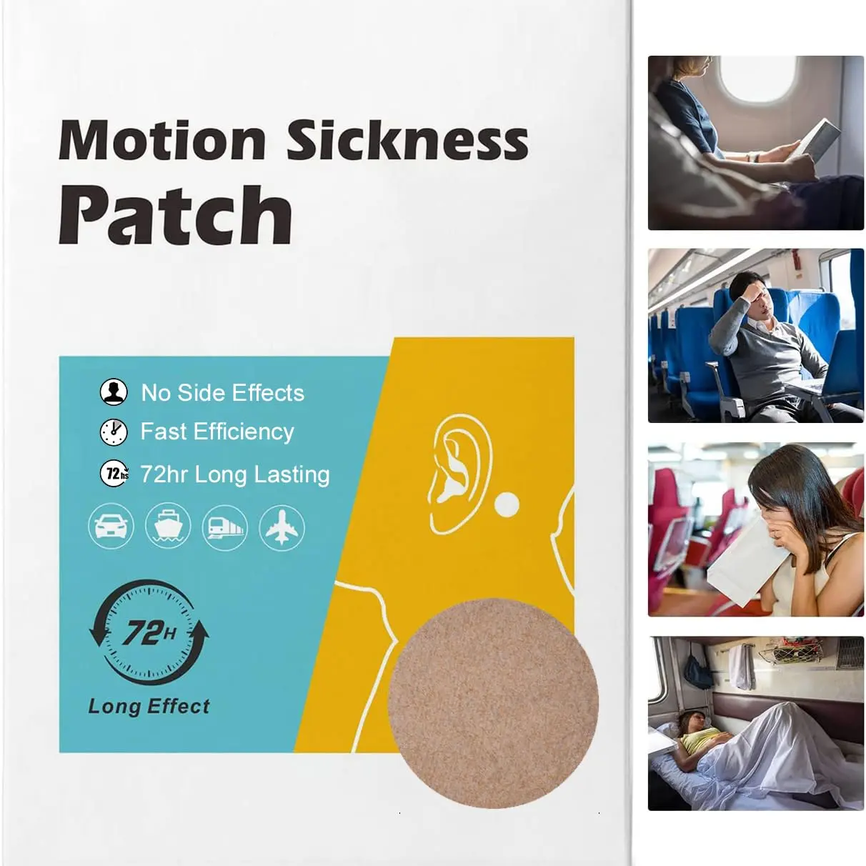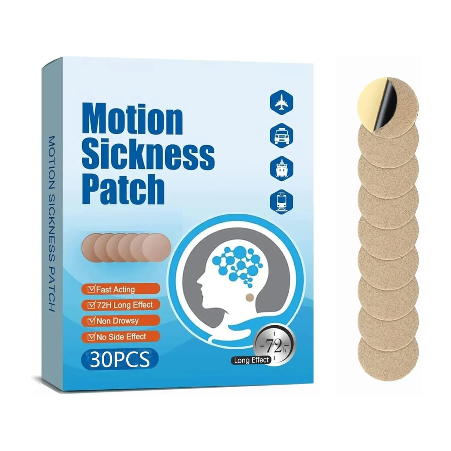 Combat motion sickness effectively with our Motion Sickness Patch! Whether you’re traveling by car, plane, boat, or train, our patch provides natural and reliable relief from nausea, vomiting, and dizziness. Our discreet and easy-to-use patches are perfect for adults and children, making travel more enjoyable for everyone. Formulated with natural plant extracts, our patches offer a safe and effective alternative to traditional medications. Simply apply the adhesive side to your belly button or behind your ears 10 minutes before you travel to experience long-lasting relief. Compact and portable, these patches easily fit into your pocket, bag, or suitcase, so you can take them with you wherever you go. Choose from our convenient pack sizes of 20, 30, or 40 patches to suit your needs. Say goodbye to travel sickness and hello to comfortable journeys with our Motion Sickness Patch! The patch uses natural ingredients to help soothe the stomach and calm the mind, providing a holistic approach to motion sickness relief. No more worrying about feeling unwell during travel; our patches offer a discreet and effective solution you can rely on. Make your next trip a pleasant experience with our easy-to-apply and fast-acting motion sickness patches! They are non-drowsy, so you can enjoy your travels without feeling tired or sluggish. Perfect for cruises, road trips, flights, and more! The patches are designed for both men and women.