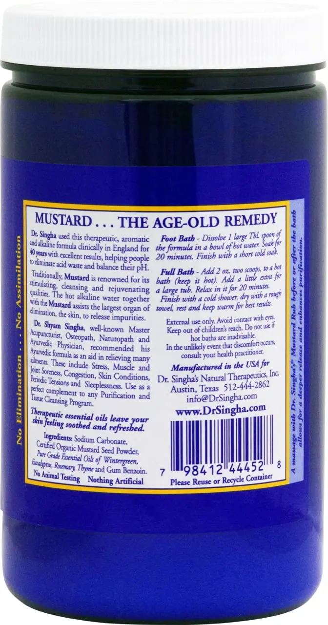 Transform your bath into a sanctuary of relaxation with our Mustard Bath Salts. This unique blend of mustard seed powder and pure essential oils offers a comforting and aromatic bathing experience, inspired by traditional wellness practices. Escape the stresses of the day and immerse yourself in the soothing warmth, perfect for unwinding and rejuvenating your body and mind. As warm water meets our carefully crafted formula, the invigorating aroma of essential oils is released, turning your bathroom into a personal spa. Embrace the warmth and comfort, especially on cool days, as this aromatic blend creates a comforting sensation from head to toe. Made with premium, quality herbal ingredients right here in the USA, our Mustard Bath Salts are free from artificial colors, synthetic fragrances, and harsh additives, ensuring a truly natural and wholesome experience. Elevate your self-care routine by adding our versatile formula to a full bath, foot soak, or tub. This is a great bathing alternative to Epsom salt for those seeking something different and a more aromatic, warming experience. Discover the difference today and make every bath a moment of pure bliss. Indulge in the comforting and revitalizing embrace of our Mustard Bath Salts, a unique blend of mustard seed powder and essential oils designed to transform your bath into a sanctuary of relaxation. Escape the stresses of the day and immerse yourself in the soothing warmth, perfect for unwinding and rejuvenating your body and mind. Perfect for those looking to destress!