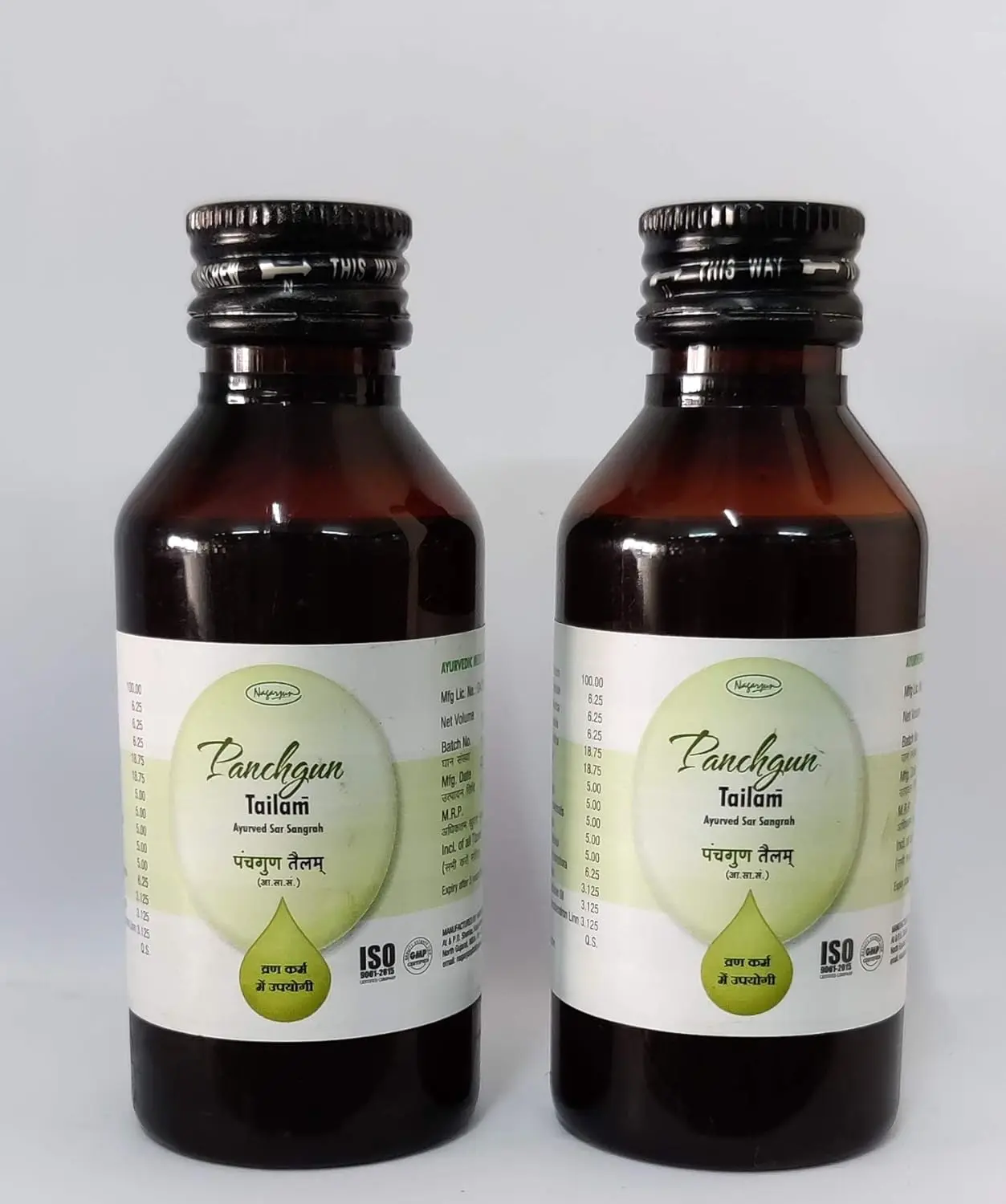 Nagarjun Panchgun Tailam 2x100ml is an Ayurvedic oil known for its potential benefits in supporting wound healing, reducing inflammation, and providing pain relief. For external use only.