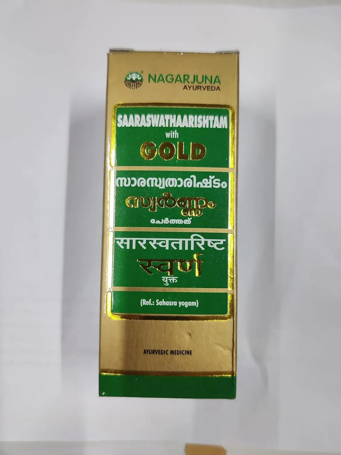 Nagarjuna Saaraswathaarishtam is a herbal brain tonic helpful in reducing stress, depression, and improving immunity. Combination of various herbs. Pack of 2 (25 ml each).