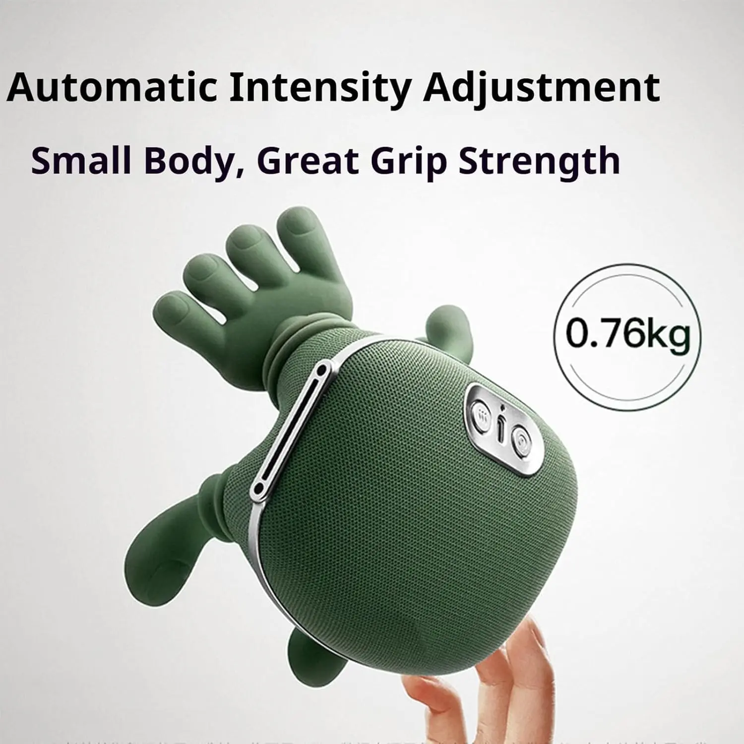 • Hand-shaped arms made of soft-touch silicone or rubber-like material for realistic kneading