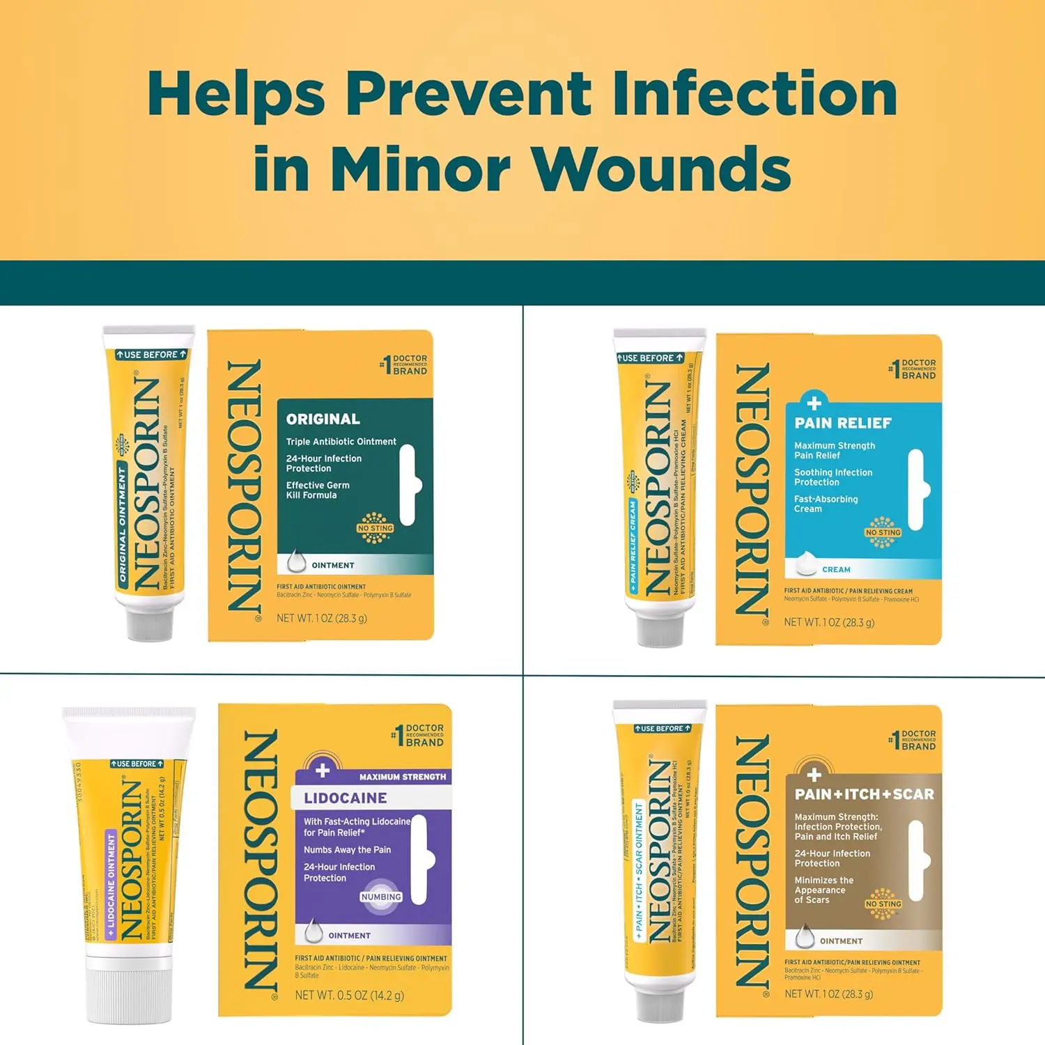 • Dual-action formula for infection prevention and pain relief
