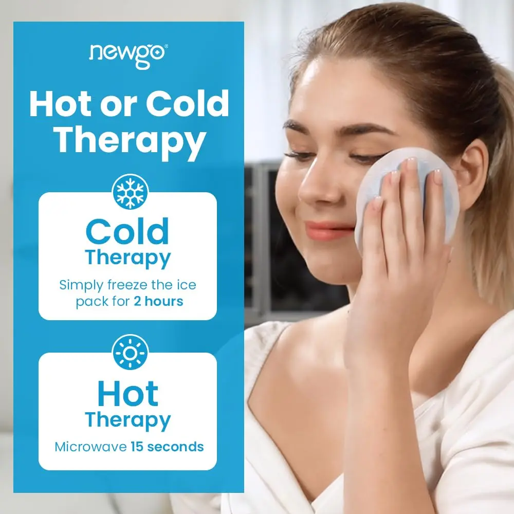 Experience targeted relief with the Newgo Cooling Pads, designed specifically for small areas like the eyes, face, and head. These reusable ice packs offer a hands-free design thanks to the included soft, elastic sleeves. Simply slip the ice pack into the sleeve and position it exactly where you need it. No more holding ice packs in place! These gel ice packs are your go-to solution for fatigue, dry and swollen eyes, headaches, migraines, allergies, hay fever, nosebleeds, sinus pressure, toothaches, tooth extractions, injections, and even pain relief while breastfeeding. The small cooling pads measure 11 cm x 11 cm and are filled with non-toxic gel, making them suitable for both hot and cold compresses. Unlike some ice packs, ours remain flexible even when frozen. The expert quality gel won’t freeze solid at -18°C, ensuring it remains pliable after 1-2 hours in the freezer. You can easily position it around your body parts with the lightweight sleeves, without worrying about slippage. Enjoy effective pain relief and muscle care through cold therapy. These versatile ice packs are both freezer and microwave safe. For cold therapy, freeze the gel pack for at least 2 hours. For heat therapy, microwave it for 10 seconds. Customize your experience by using the PE side for more intense cold or the non-woven fabric side for gentler cooling, perfect for sensitive skin. The small size and circular shape provide targeted compression, maximizing relief. Whether you’re battling a toothache or recovering from a facial injury, these ice packs offer comfort and support. When using, it is recommended to limit continuous use to 20 minutes and avoid direct application to open wounds. Discover the soothing power of Newgo Cooling Pads today!